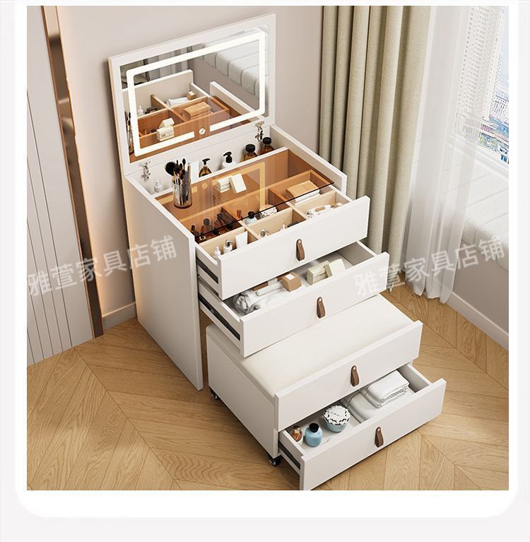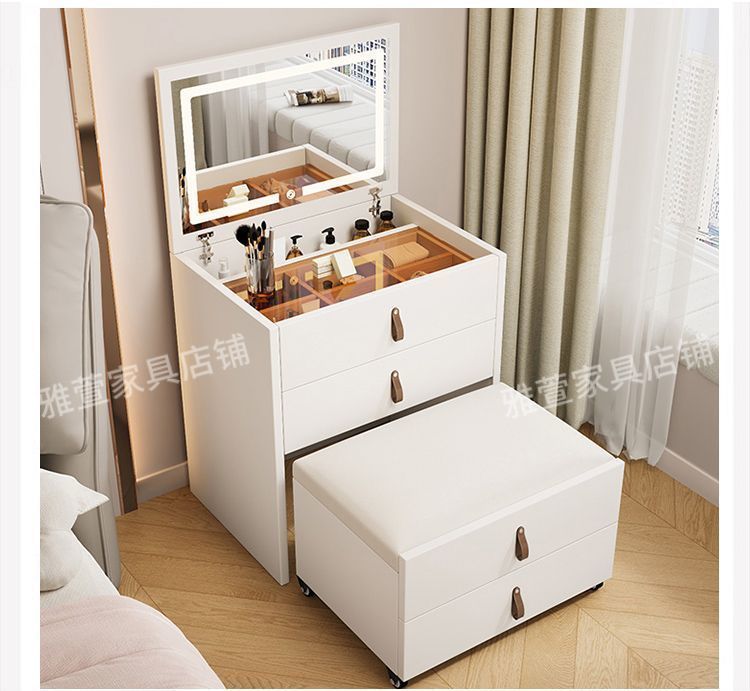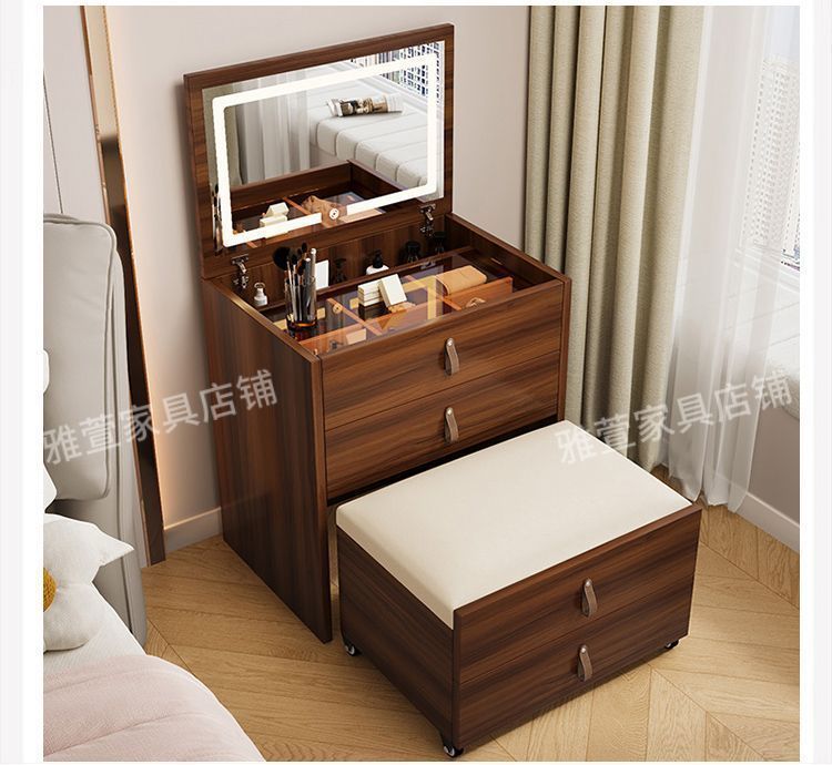 화장대 수납장 일체형 침실 심플 모던 2025 신형 원목 플립업 거울은 빗을 숨길 수 있는 원목
