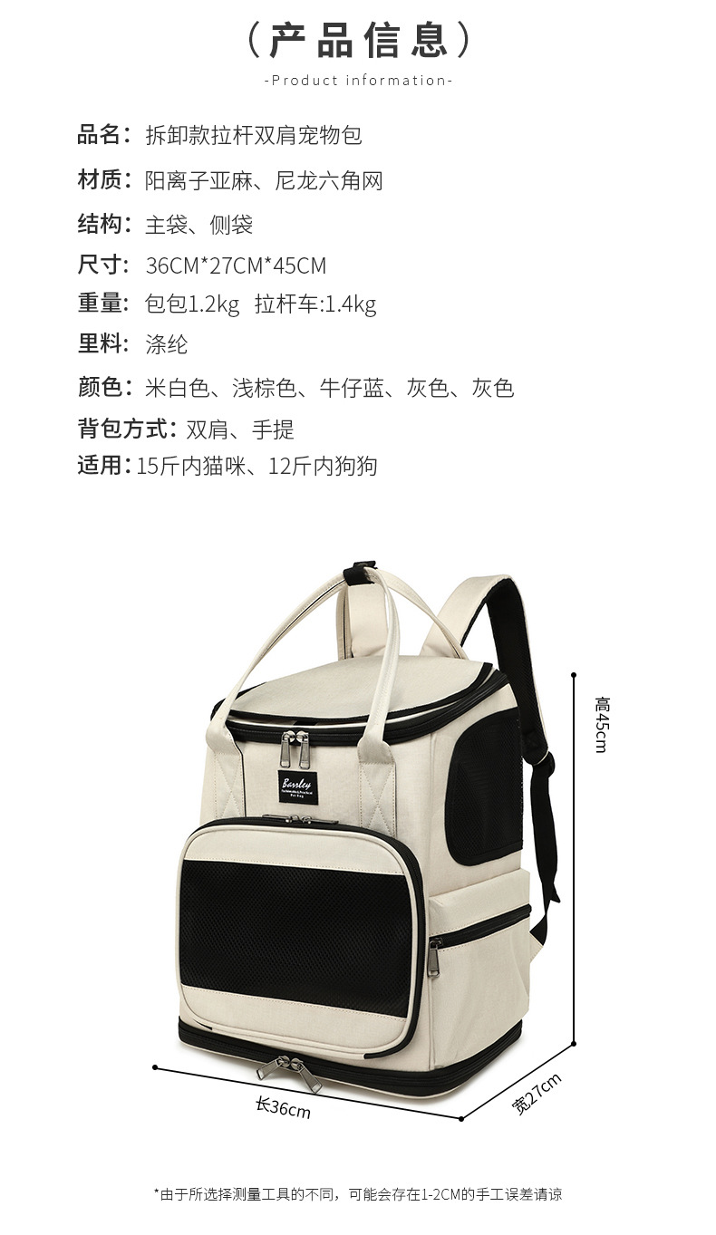 고양이 가방, 휴대용 개 가방, 탈착식 트롤리 박스, 배낭, 야외 여행 테이크아웃 고양이용 애완동물 가방