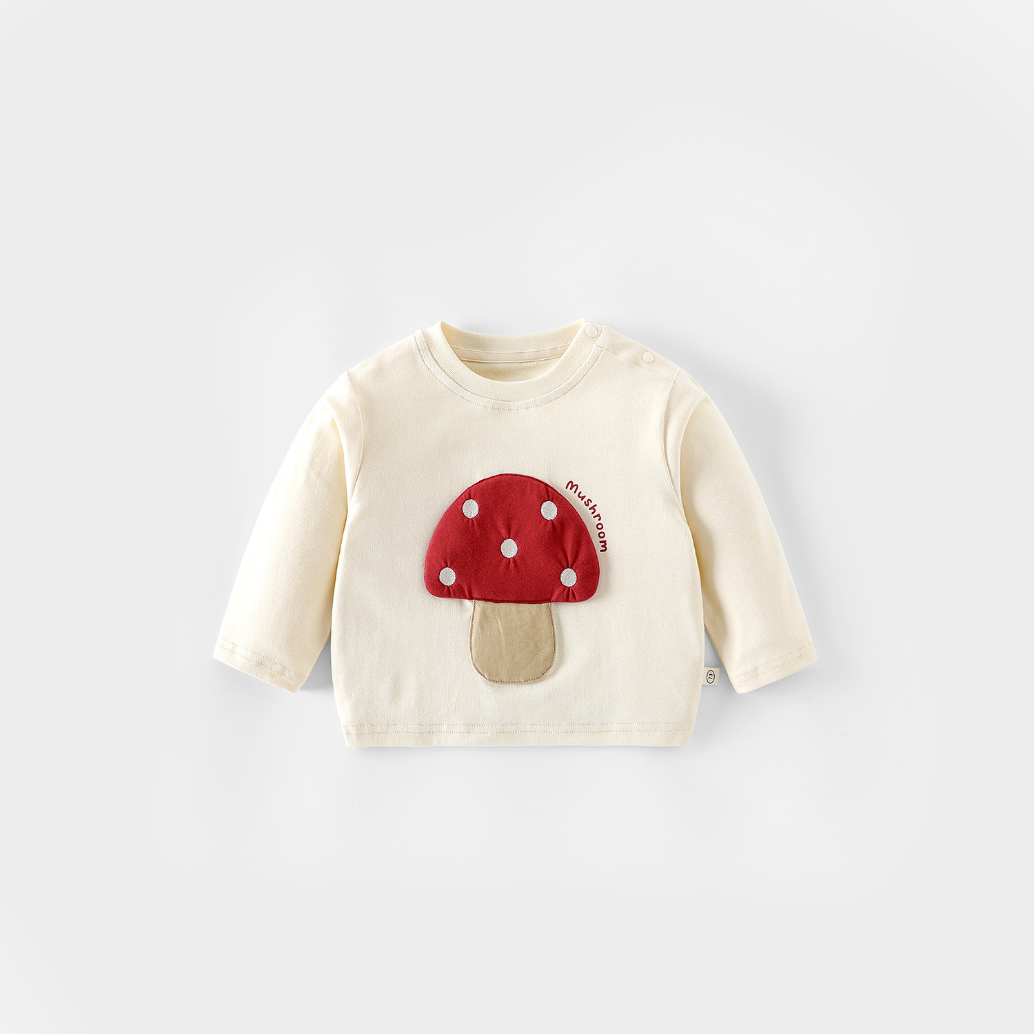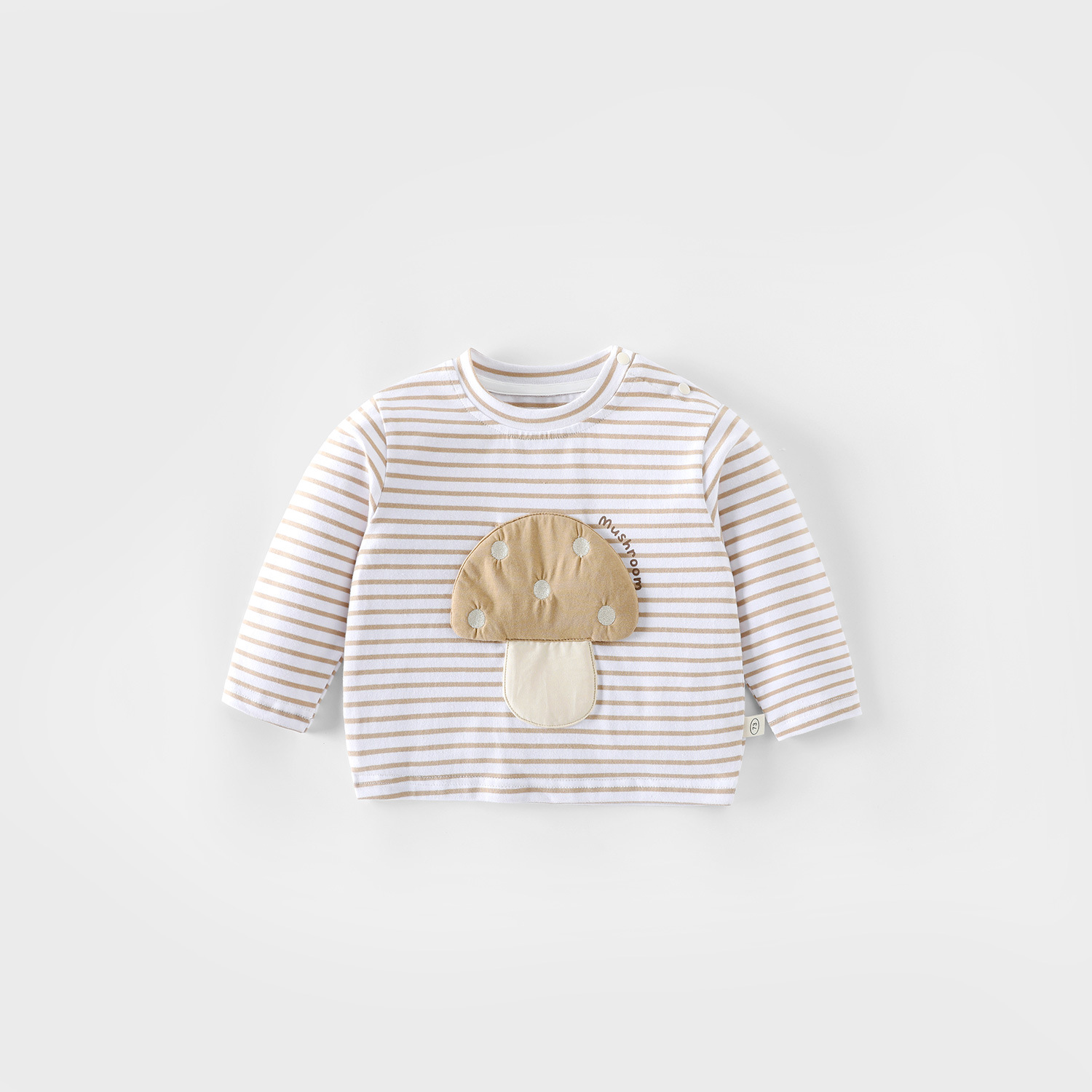 아동용 패치베이스 셔츠 2025 새로운 가을 소년 스타일 버섯 티셔츠 아기 슈퍼 귀여운 줄무늬 탑 유행스토어 가기