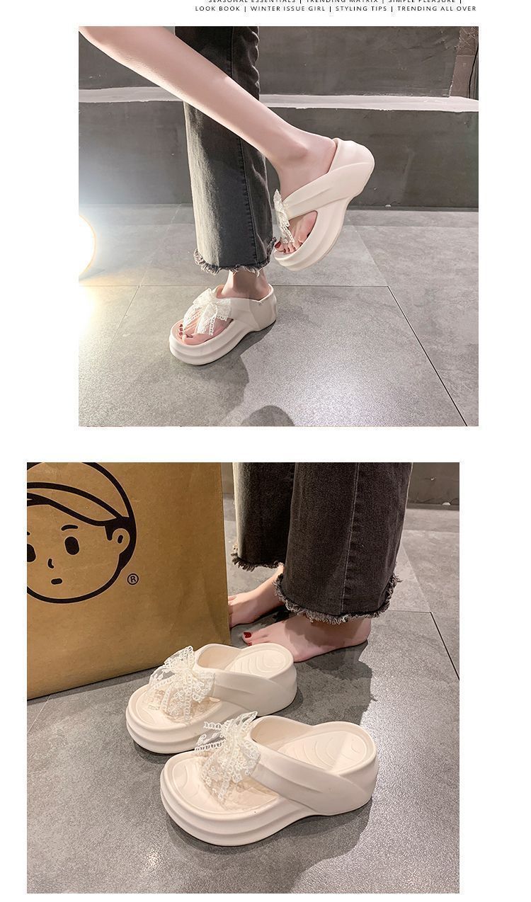 편안하고 두꺼운 밑창 플립 플롭 여성용 비치 샌들 2025 여름 레이스 보우 여성용 플립 플롭스토어 가기