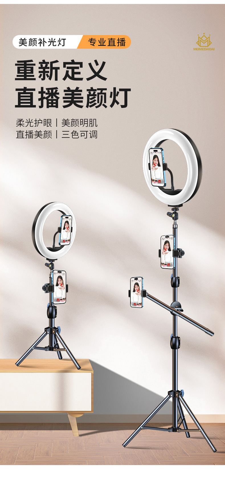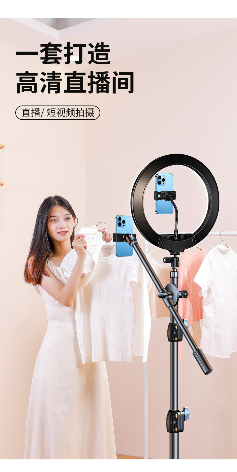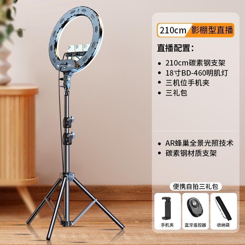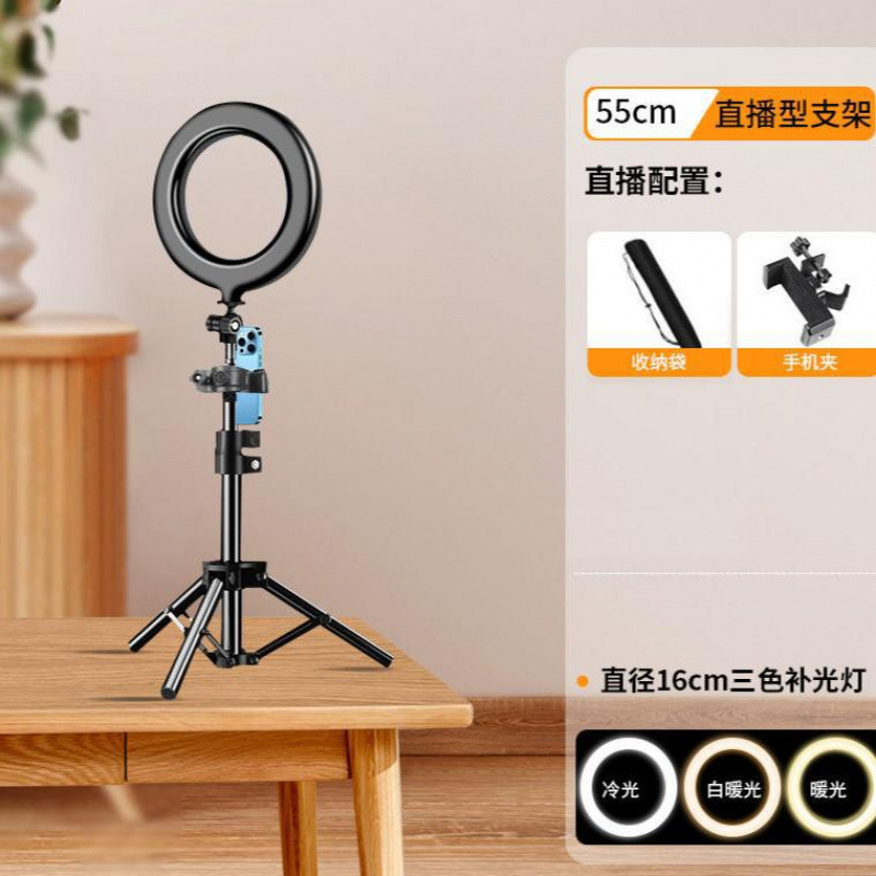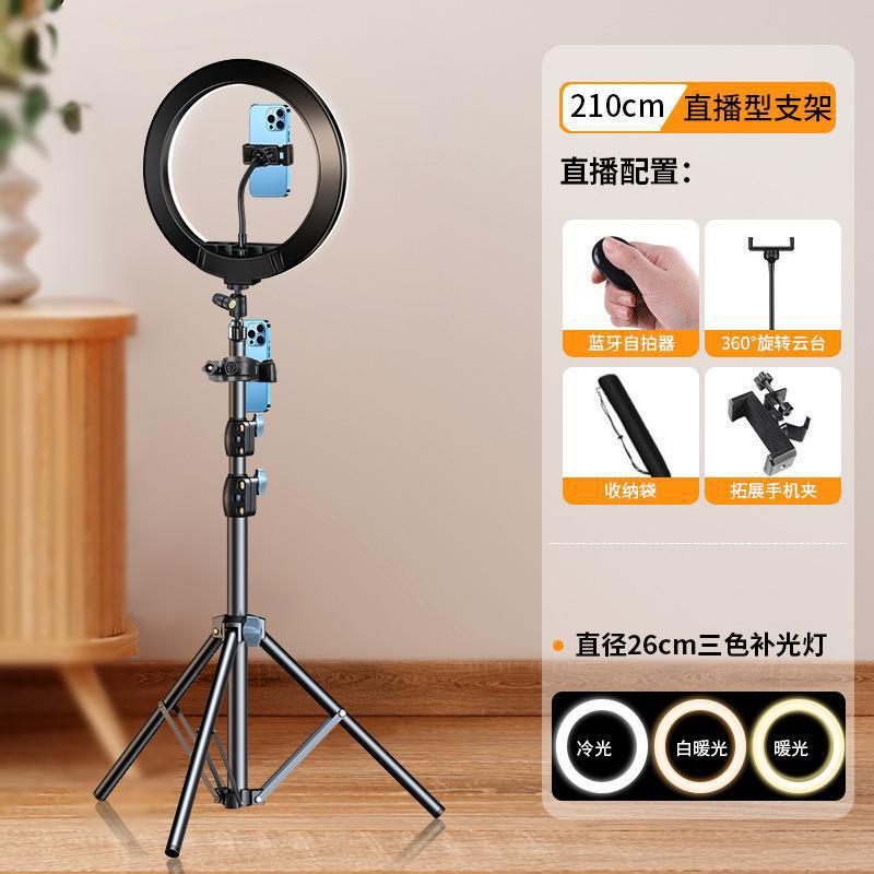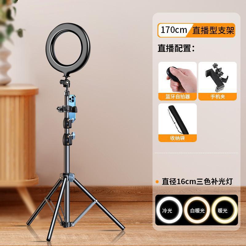 휴대폰 라이브 방송 스탠드 삼각대 스탠드 휴대용 바닥 장착형 야외 비디오 촬영 및 사진 촬영(보조 조명 포함)스토어 가기