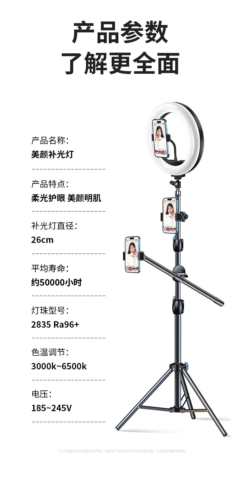 • 기본 모델 53cm+26CM (10inch ) 램프에는 셀카가 포함되어 있습니다.