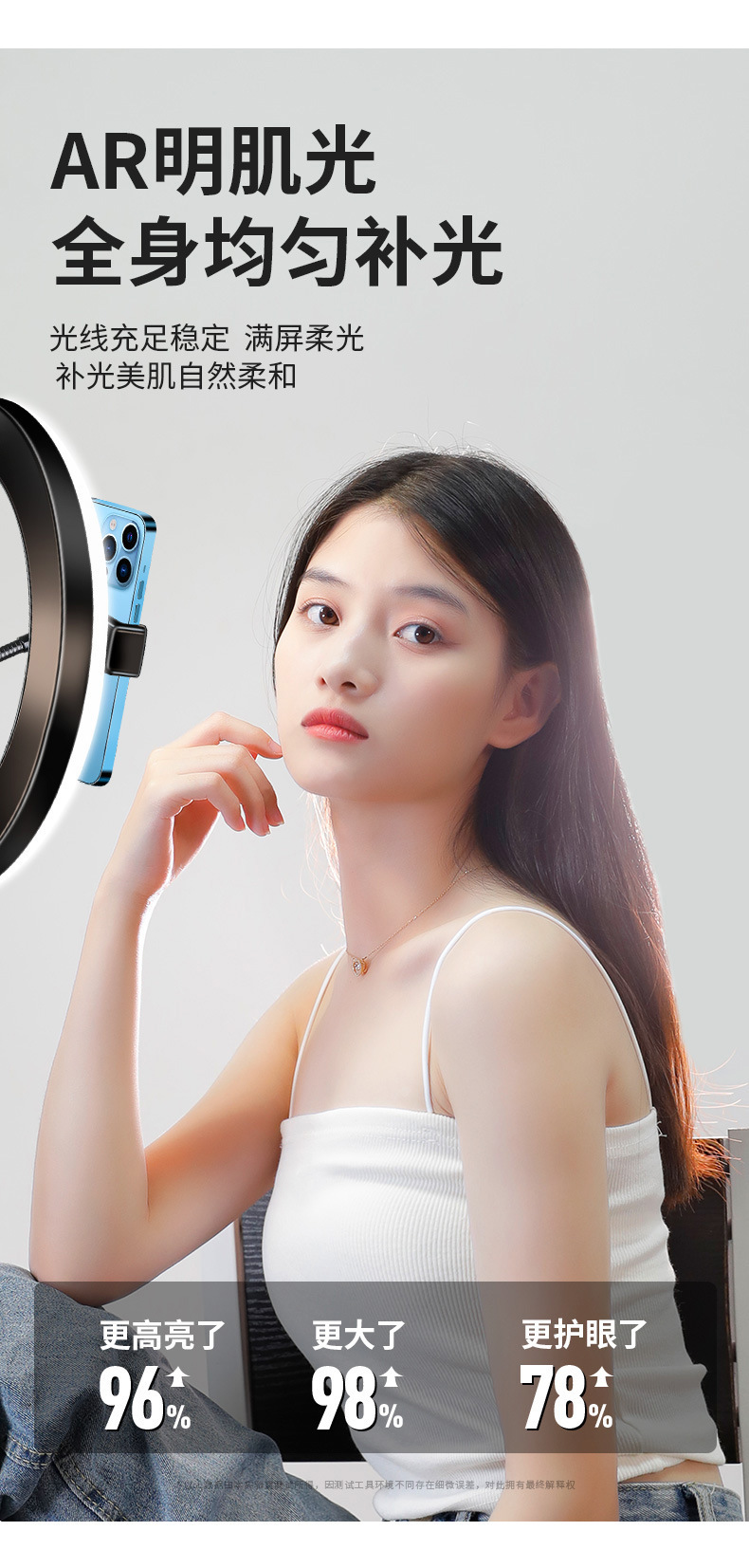 • [업그레이드 모델] 0.55m _2 카메라 위치_ 10inch (26CM) 라이트에는 셀카 + 가방이 함께 제공됩니다.