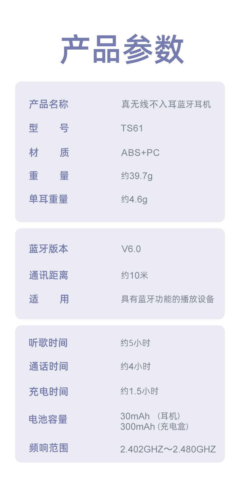 2025 새로운 블루투스 헤드셋 V6.0 국경 간 개인 모델 긴 배터리 수명 ENC 소음 감소 이어 클립 무선 헤드셋 재고 있음