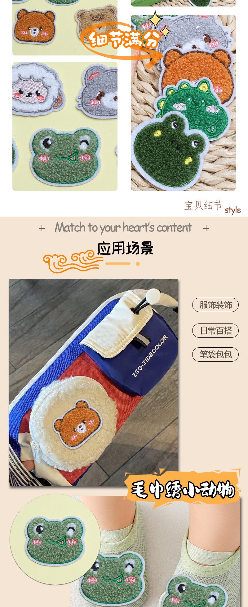 만화 동물 곰 머리 수건 벨벳 자수 스티커 다운 재킷 재봉 패치 스티커 배낭 신발 및 모자 장식 스티커스토어 가기
