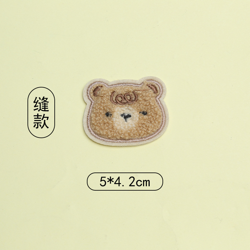 만화 동물 곰 머리 수건 벨벳 자수 스티커 다운 재킷 재봉 패치 스티커 배낭 신발 및 모자 장식 스티커