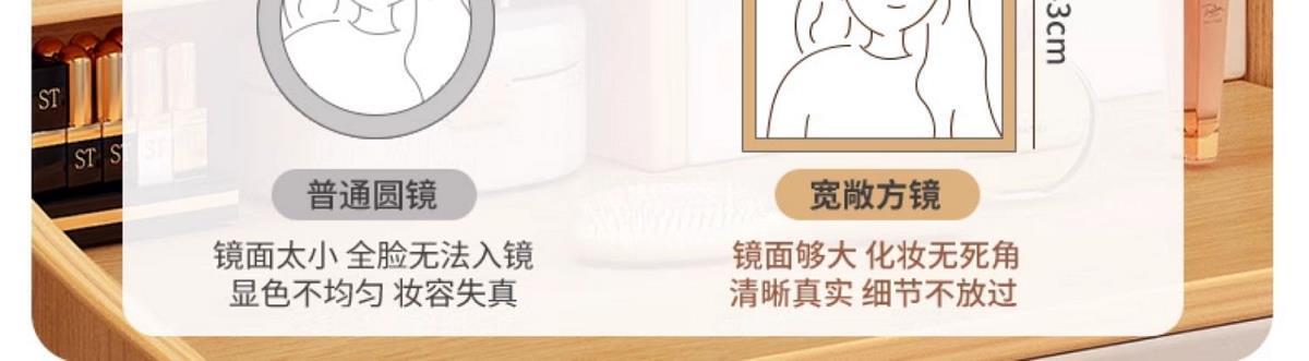 • 스마트 원형거울 모델, 문 2개, 서랍 1개, 80cm+ 정사각형 스툴