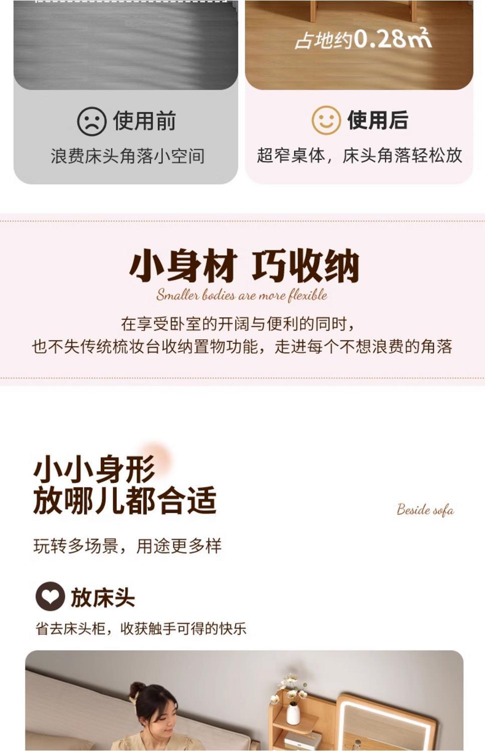옷장 작은 침실 심플 모던 2025 새로운 마스터 침실 작은 아파트 60cm 침대 옆 화장 거울 화장대