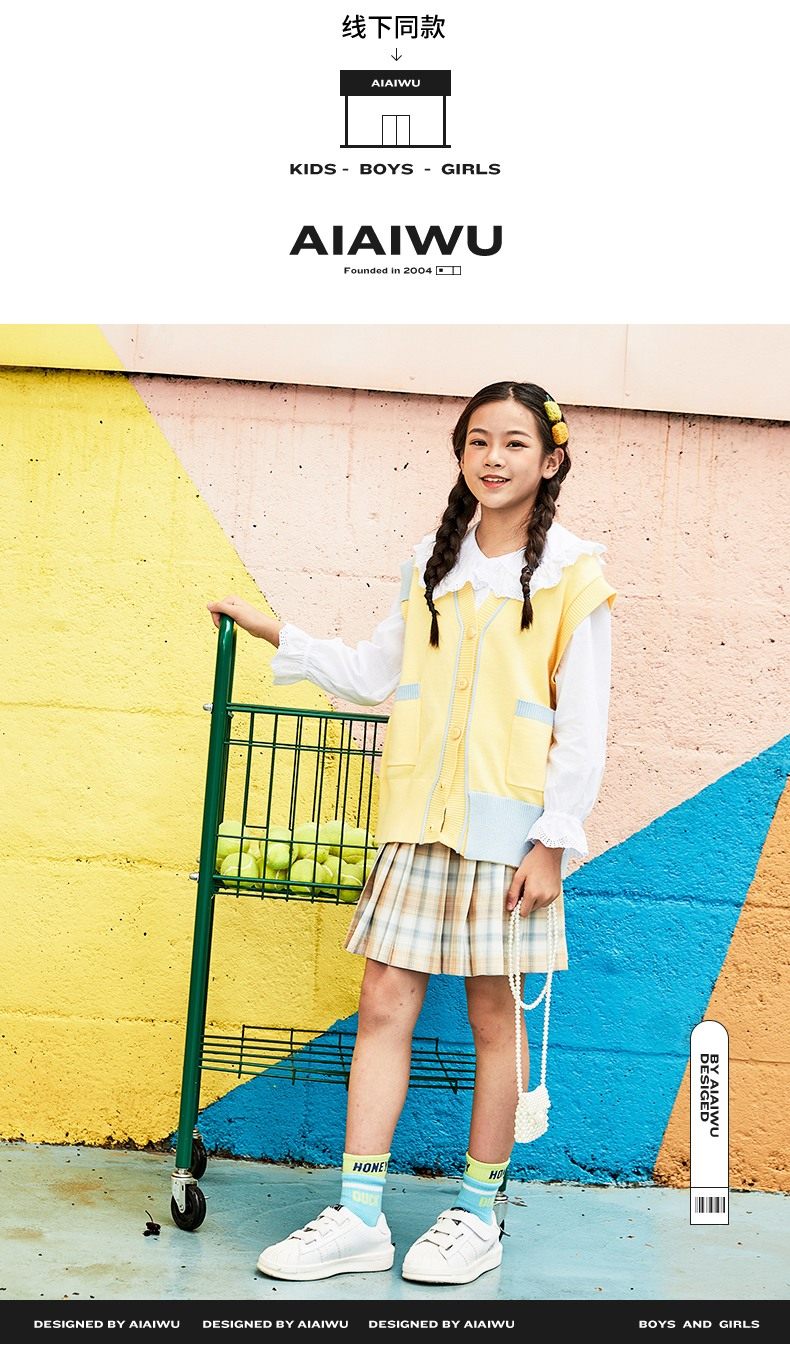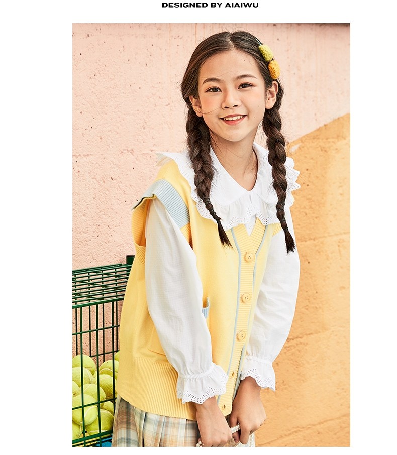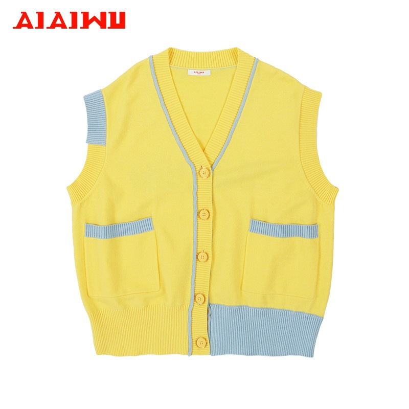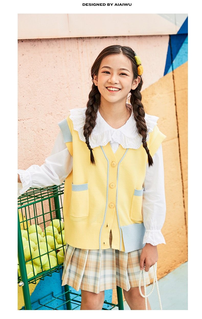 Aaiwu 여아 코트 가을 중대형 아동 스웨터 대학 스타일 스웨터 조끼 TLAM31스토어 가기