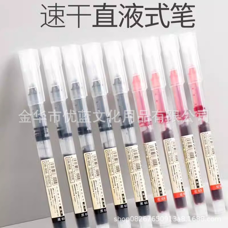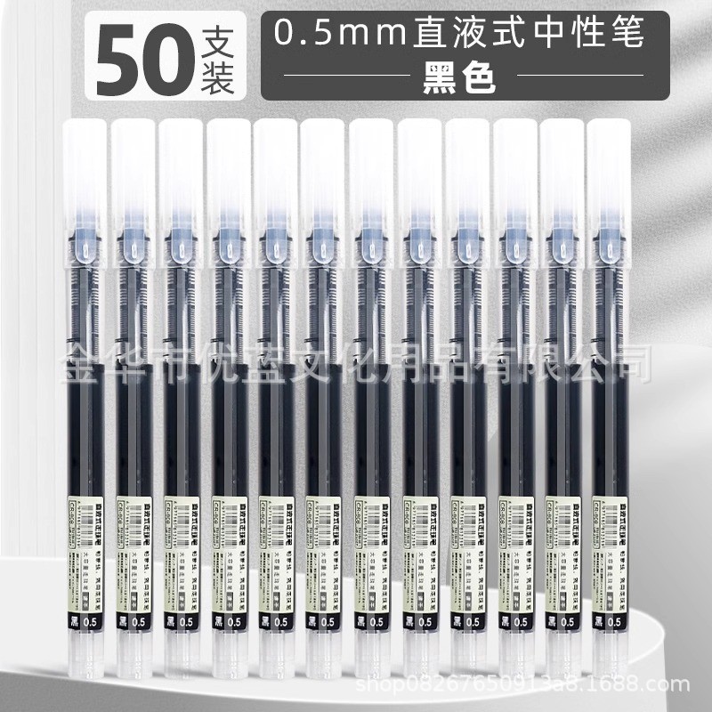 Juneng 쓰기 직선 액체 볼펜 속건성 검정색 젤 펜 대용량 일회용 서명 펜 볼펜 0.5m