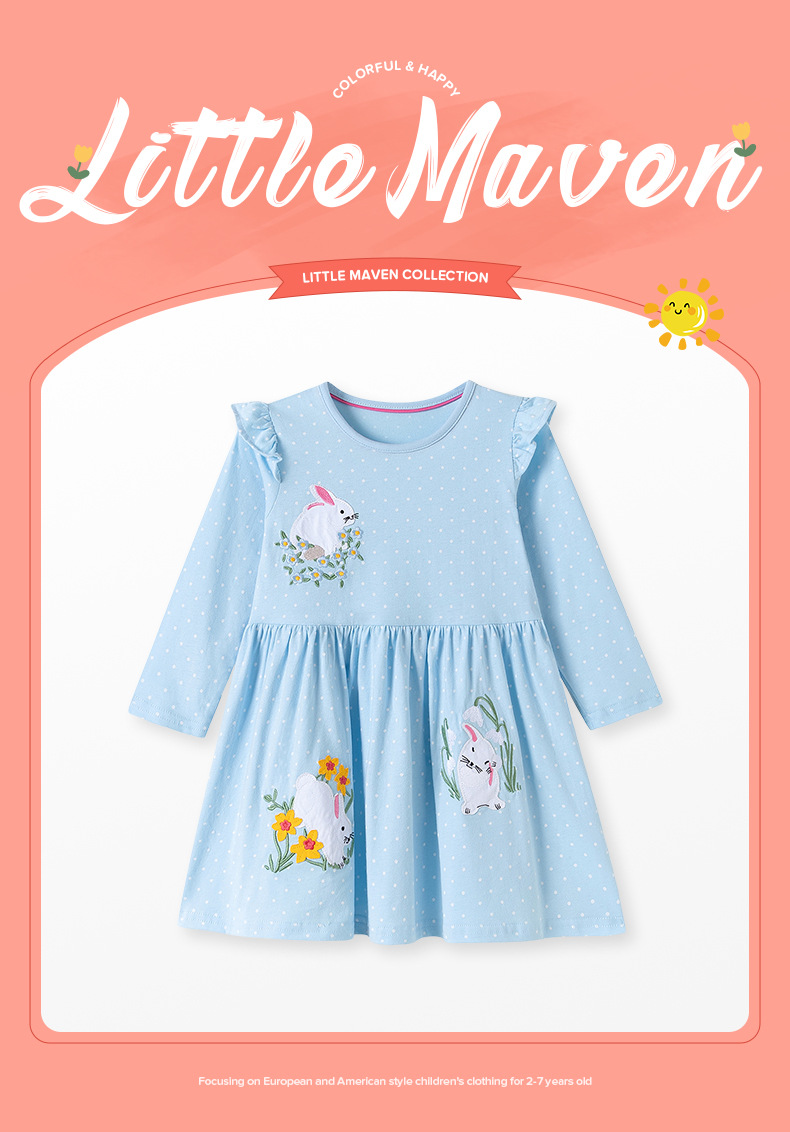 Little maven 국경 간 유럽과 미국 스타일의 어린이 드레스 만화 소녀 드레스 가을 어린이 드레스 도매스토어 가기
