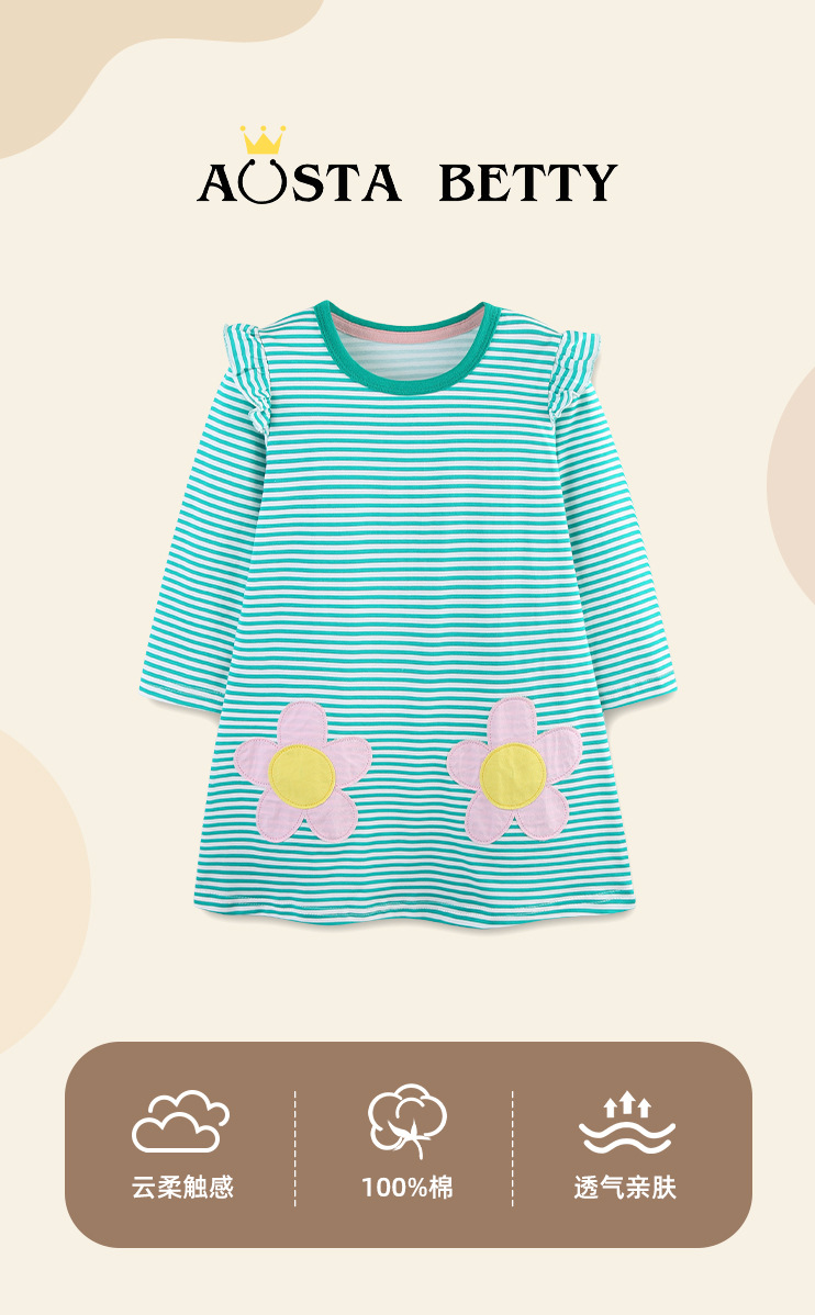 25 새로운 가을 소녀 드레스 유럽과 미국 스타일의 패션 공주 드레스 만화 꽃 패치 스트라이프 어린이 드레스 크로스 보더스토어 가기