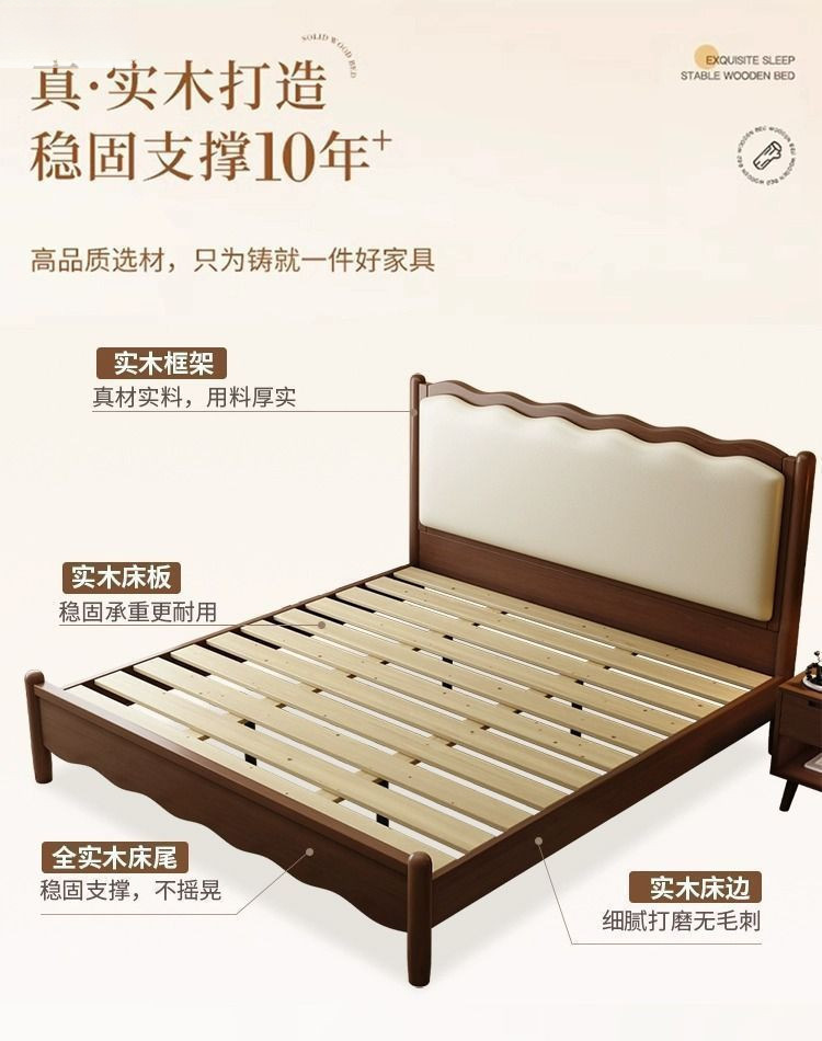 원목 침대, 북유럽 복고풍 더블 침대, 한국식 웨이브 침대, 중세 스타일 침대, 프렌치 침대, 가볍고 고급스러운 소프트백 웨딩 침대, 침실