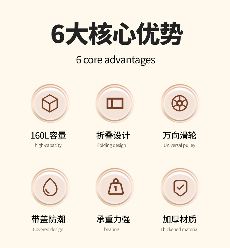 • 화이트+브라운 커버 [155L 대용량/접이식/도르래 포함]