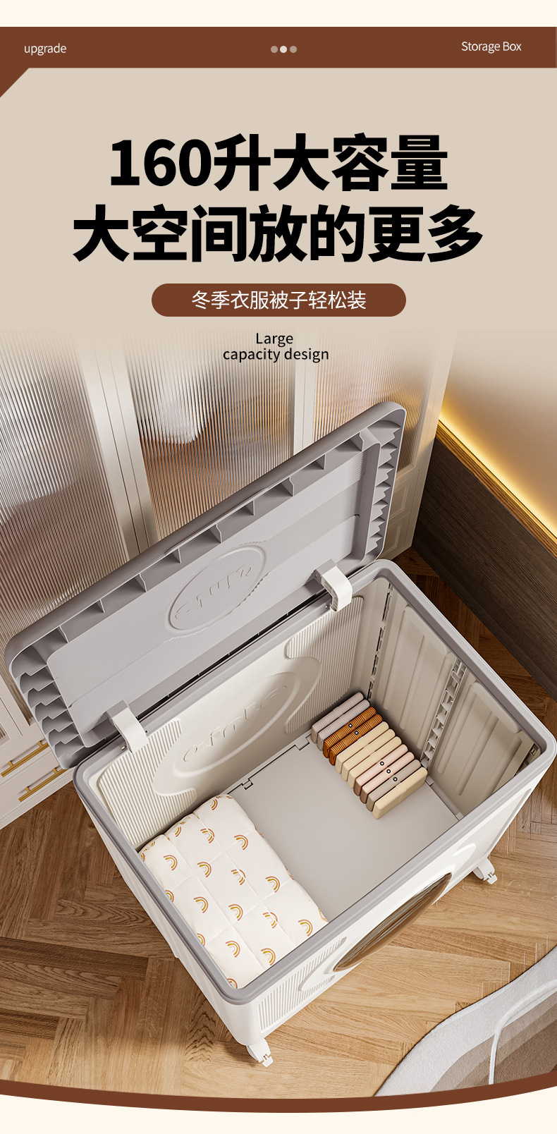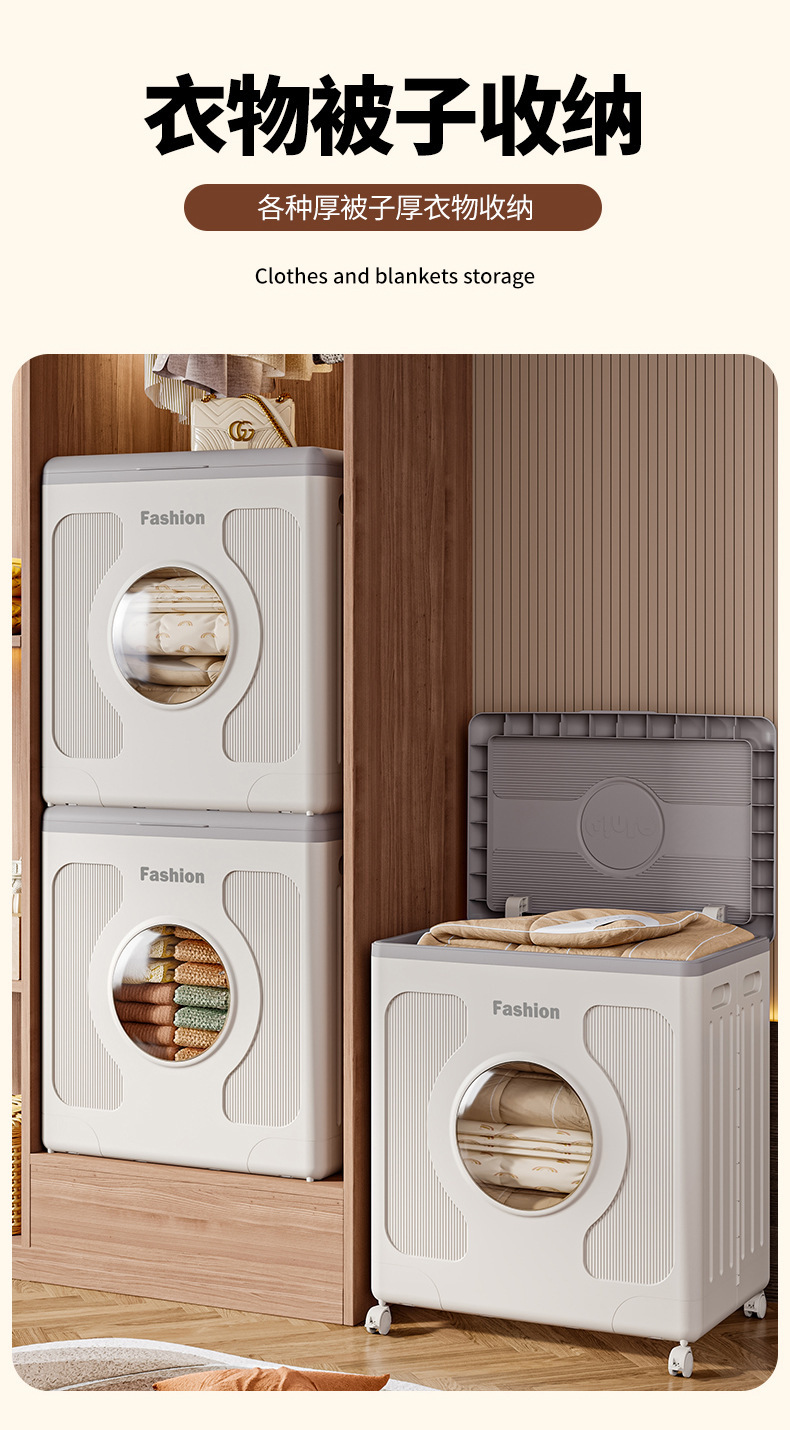 옷 보관 상자 가정용 대용량 플립 침실 의류 이불 보관 상자 바퀴가 달린 접이식 보관 캐비닛