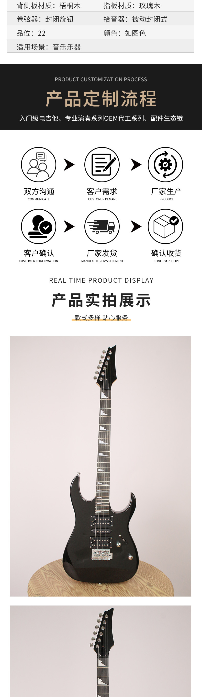 맞춤형 170 시리즈 완전 광택 래커 초보자 보급형 일렉트릭 기타 전문 디버깅 록 기타 세트스토어 가기