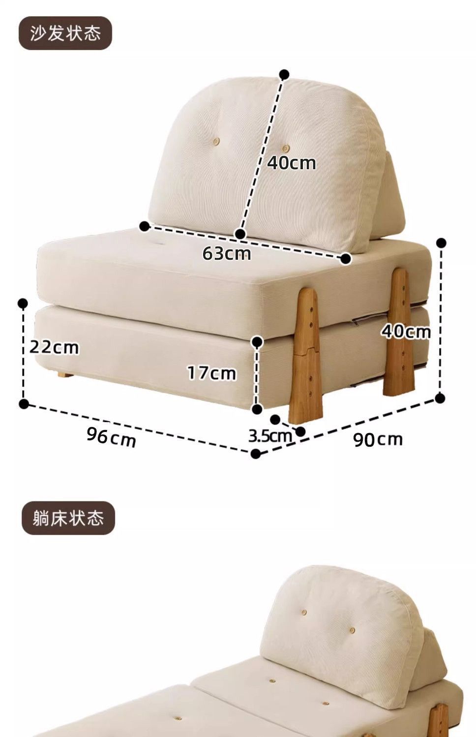 맞춤형 레이지 소파 모듈 블록 접이식 조합 소파 침대 원목 1인용 겸용 소형 아파트용 해외 직구