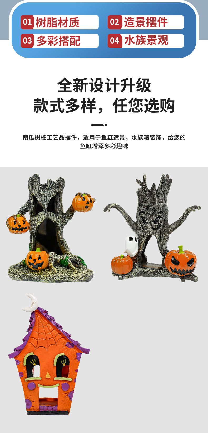 할로윈 장식 호박 나무 뿌리 수지 장식품 물고기와 새우 피난처 집 장식품 세트 수족관 물고기 탱크 장식