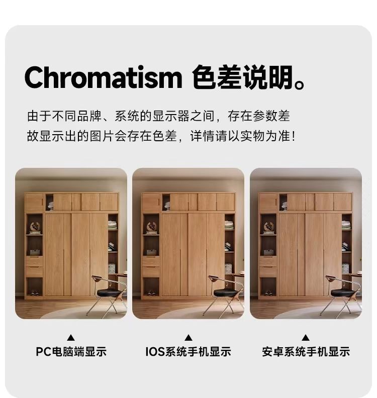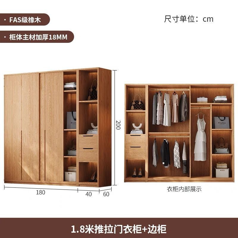 • 1.8m 미닫이문 옷장 + 사이드 캐비닛 [FAS등급 올오크]
