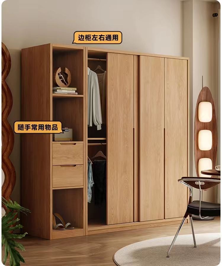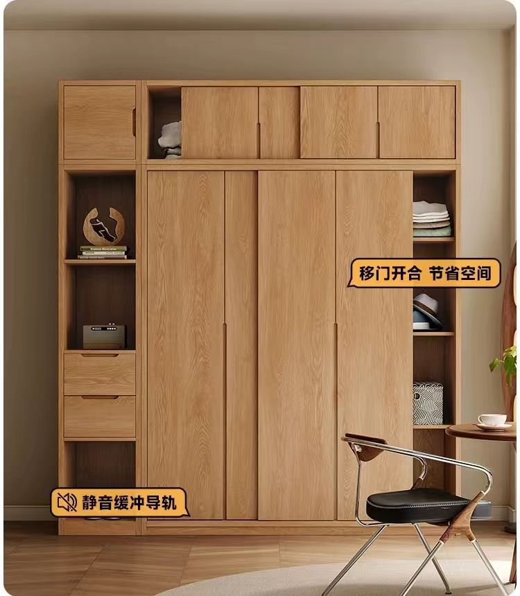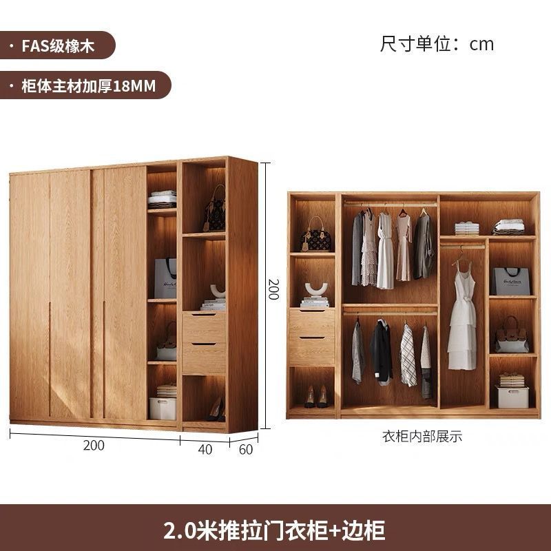 • 2.0m 미닫이문 옷장 + 사이드 캐비닛 [FAS등급 올오크]