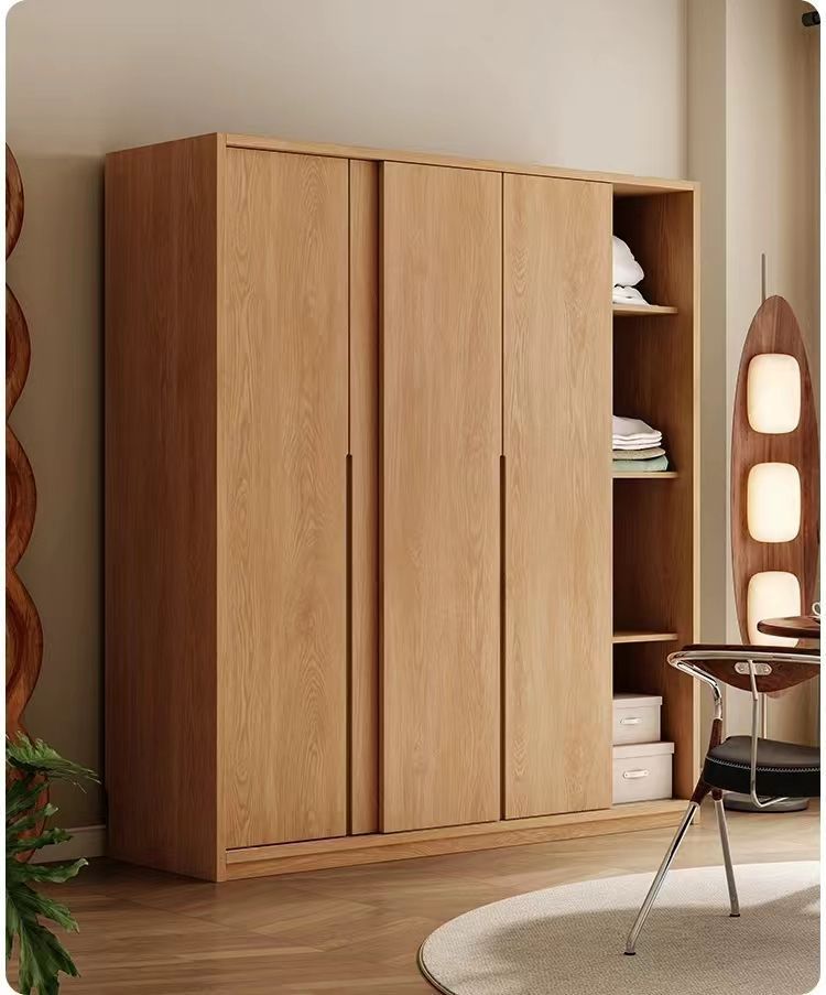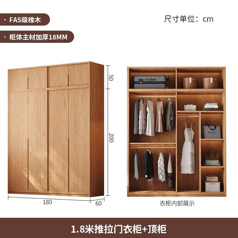 모든 단단한 나무 오크 슬라이딩 도어 옷장 홈 침실 보관 캐비닛 북유럽 로그 스타일 작은 아파트 슬라이딩 도어 옷장