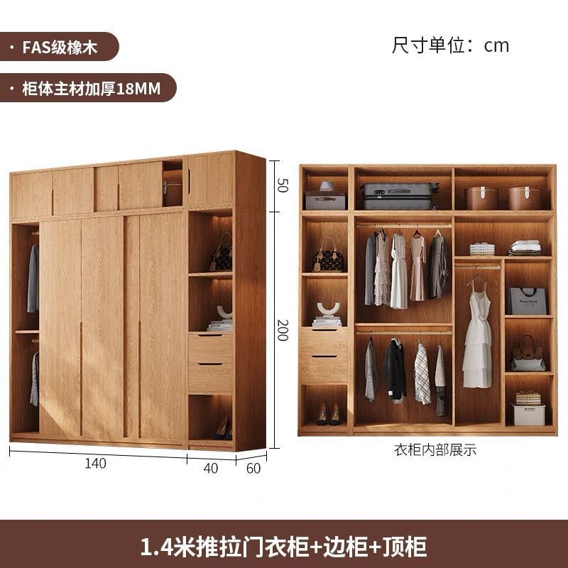 • 1.4m 미닫이문 옷장 + 사이드 캐비닛 [FAS등급 올오크]