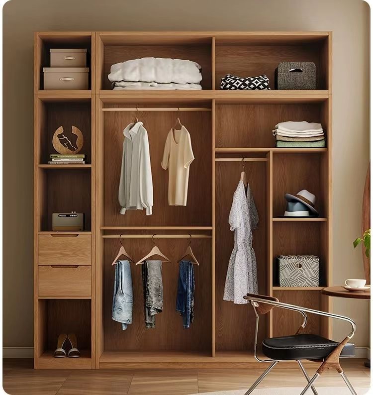 모든 단단한 나무 오크 슬라이딩 도어 옷장 홈 침실 보관 캐비닛 북유럽 로그 스타일 작은 아파트 슬라이딩 도어 옷장스토어 가기