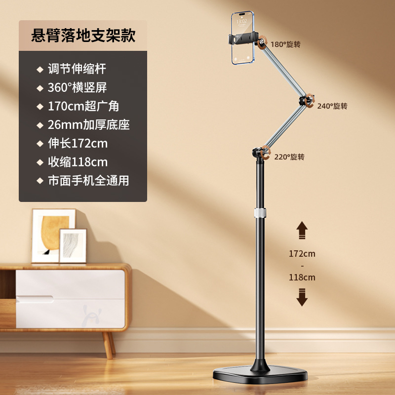 라이브 방송 플로어 스탠딩 지지대, 다기능 텔레스코픽 오버헤드 샷 조정, 휴대폰 및 태블릿 전용 게으른 스탠드, 도매 재고 있음스토어 가기