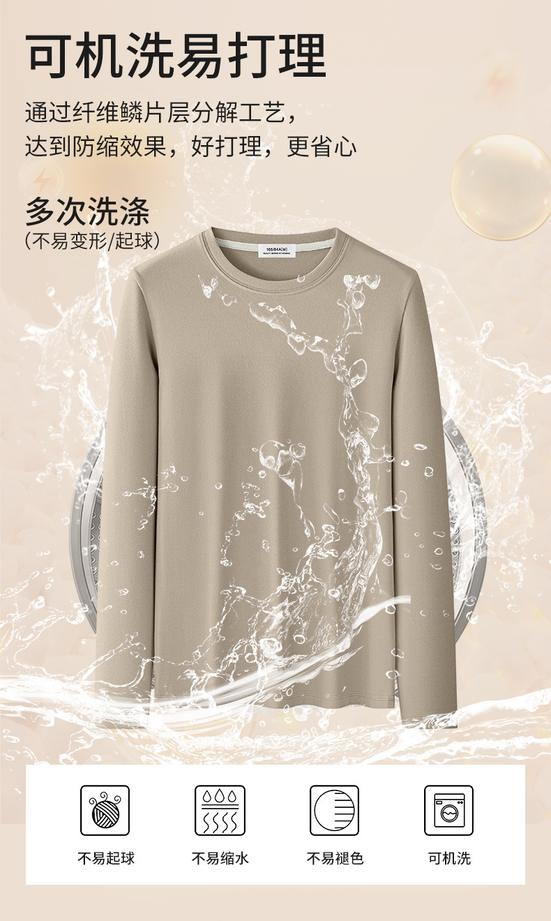 10A 항균 독일산 벨벳 라운드넥 이너웨어 청년 남성용 가을 겨울 두꺼운 보온 플리스 긴팔 티셔츠 상의스토어 가기