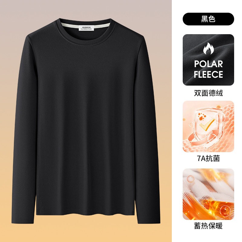 10A 항균 독일산 벨벳 라운드넥 이너웨어 청년 남성용 가을 겨울 두꺼운 보온 플리스 긴팔 티셔츠 상의
