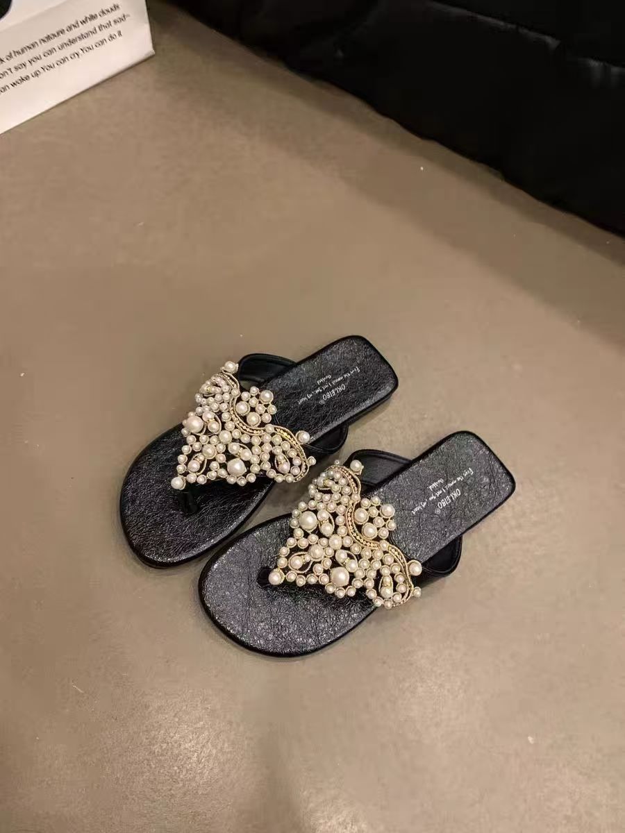 여성 여름 아우터웨어를위한 부드러운 요정 스타일 플립 플롭 새로운 진주 비치 보헤미안 샌들