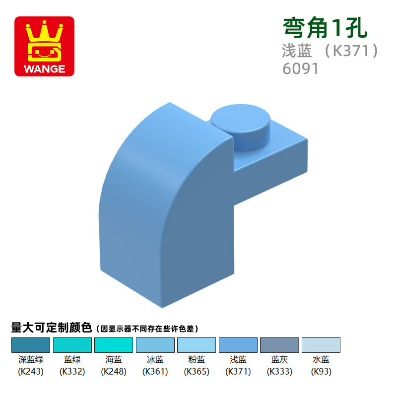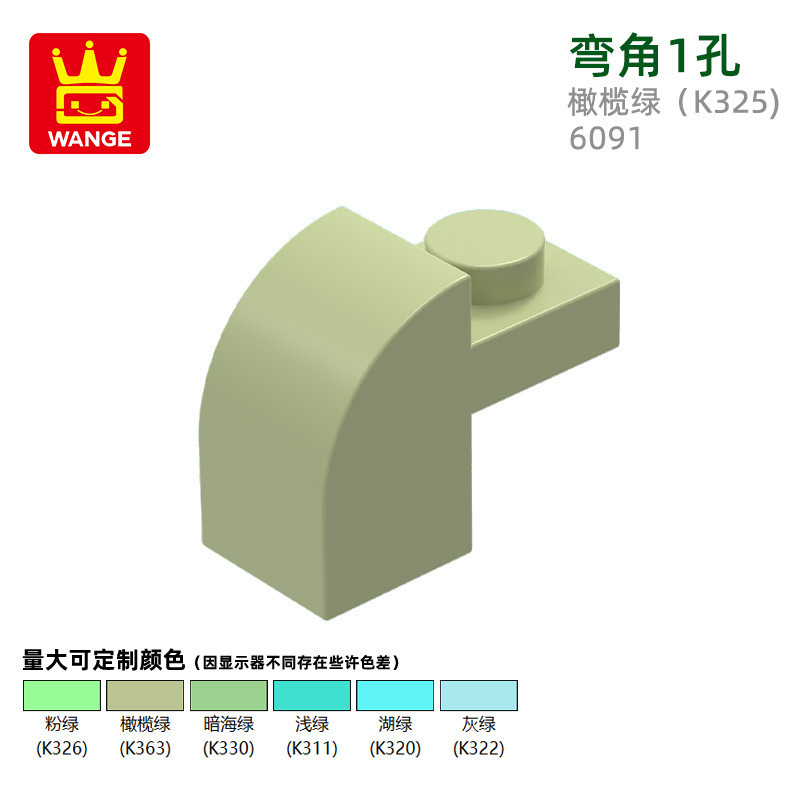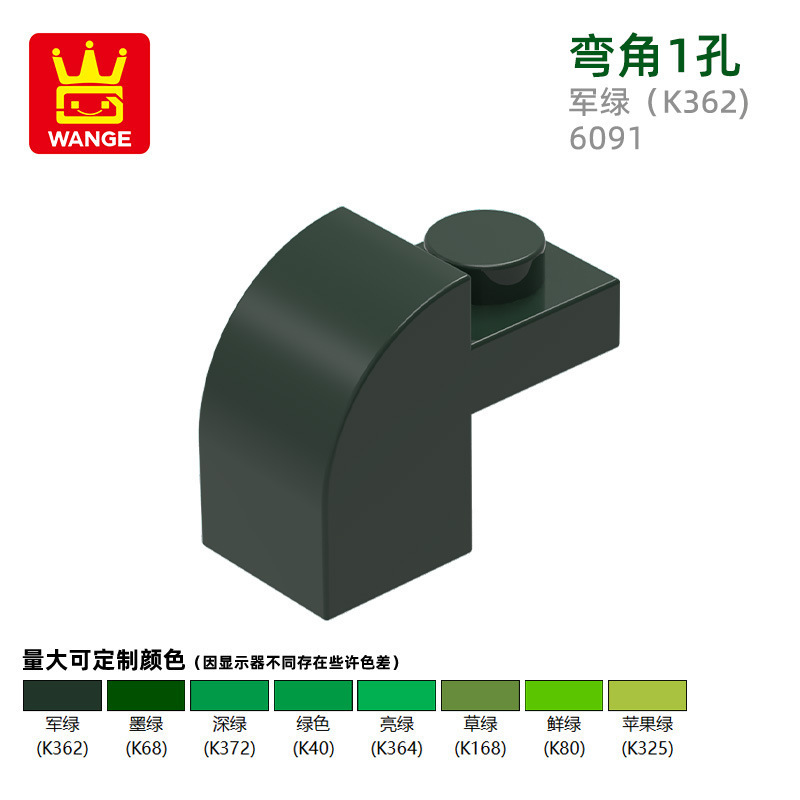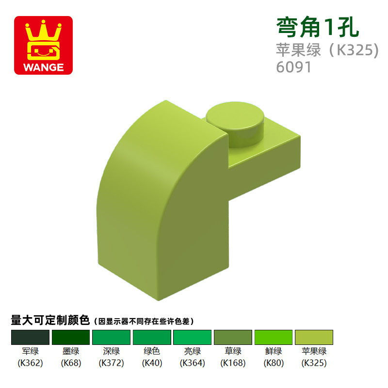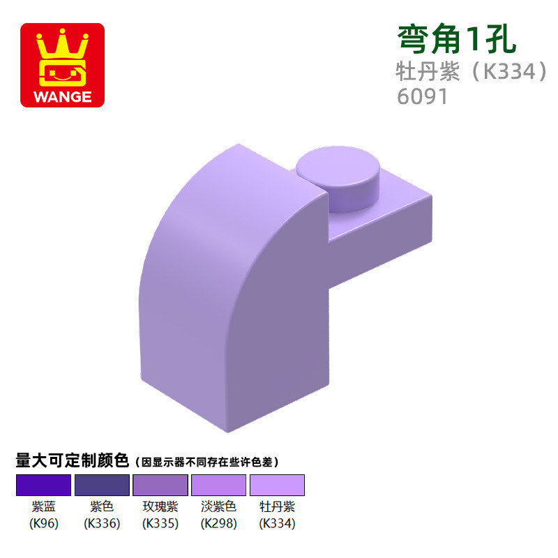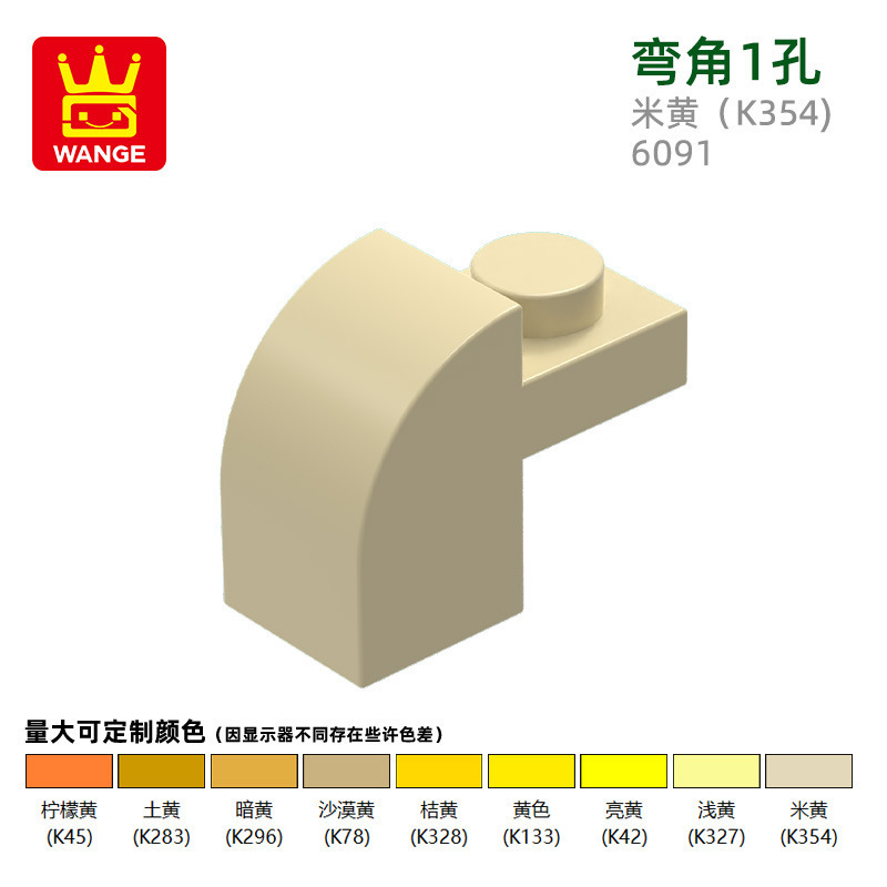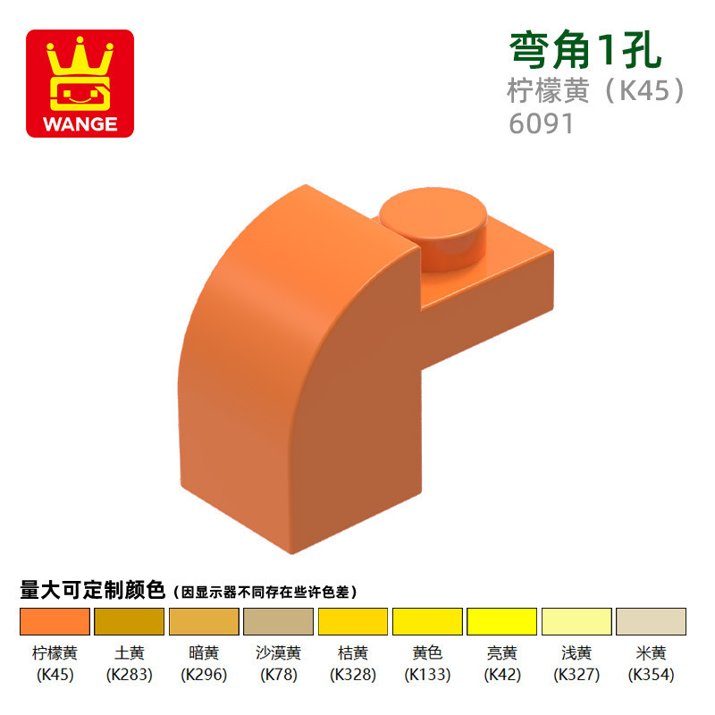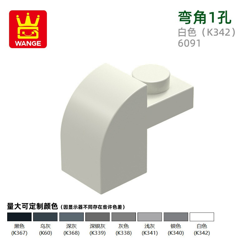 Wange diy 작은 입자 국내 빌딩 블록 6091 조립 부품과 호환 가능 곡선 각도 1 구멍 과학 및 교육 장난감 손으로 만든 도매