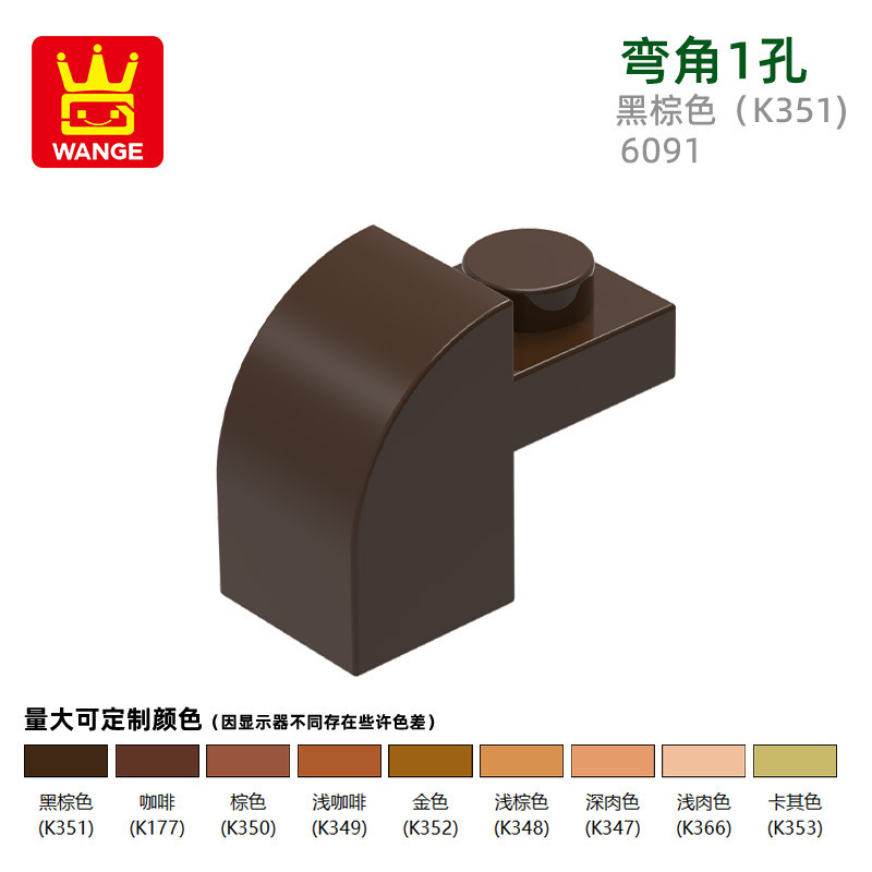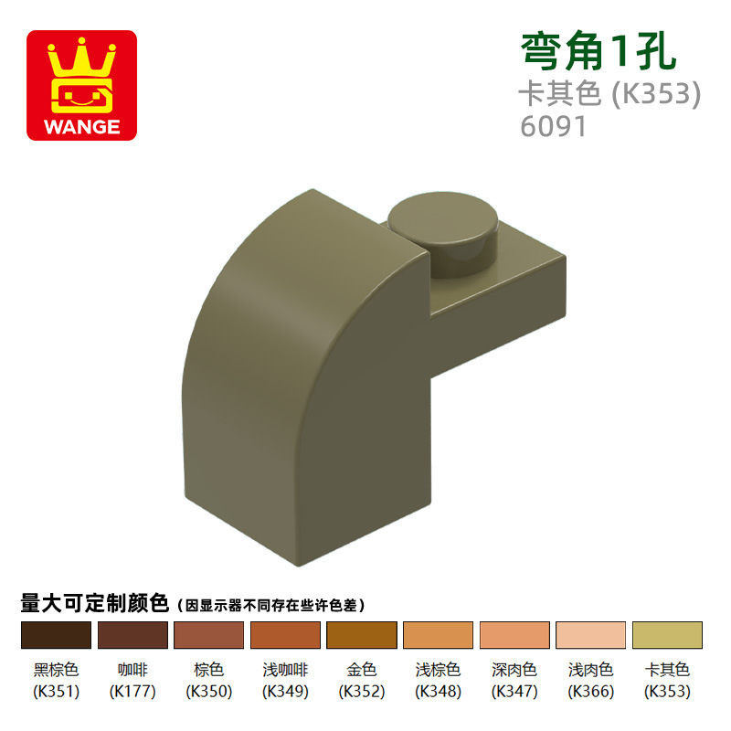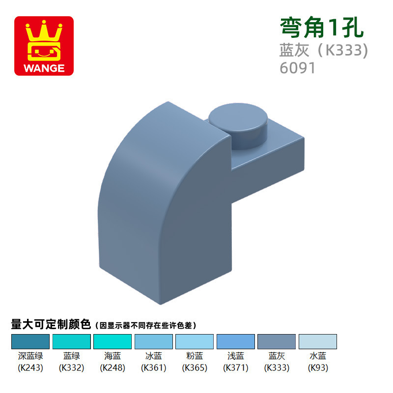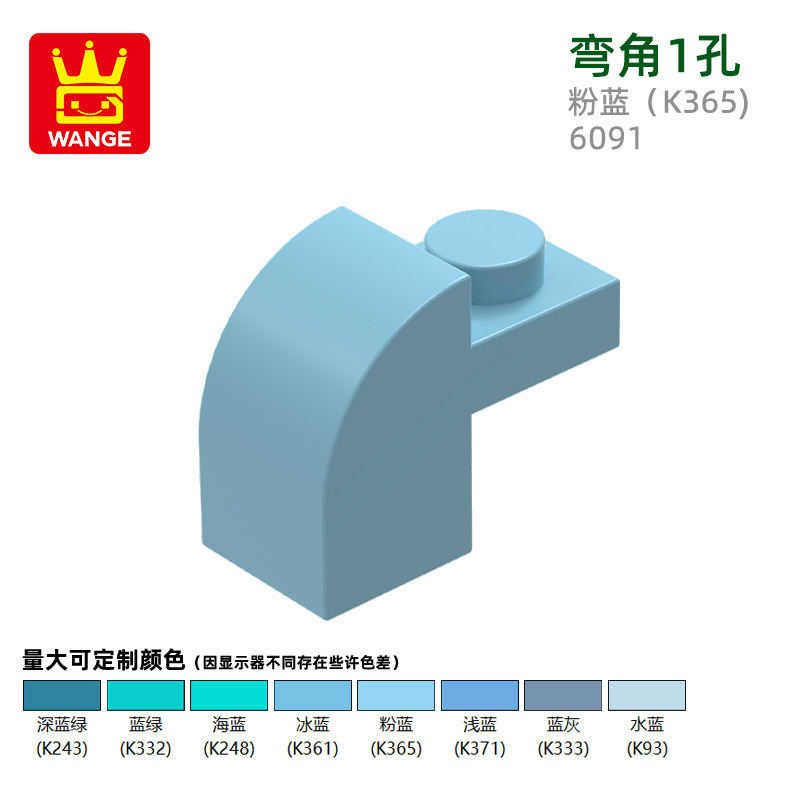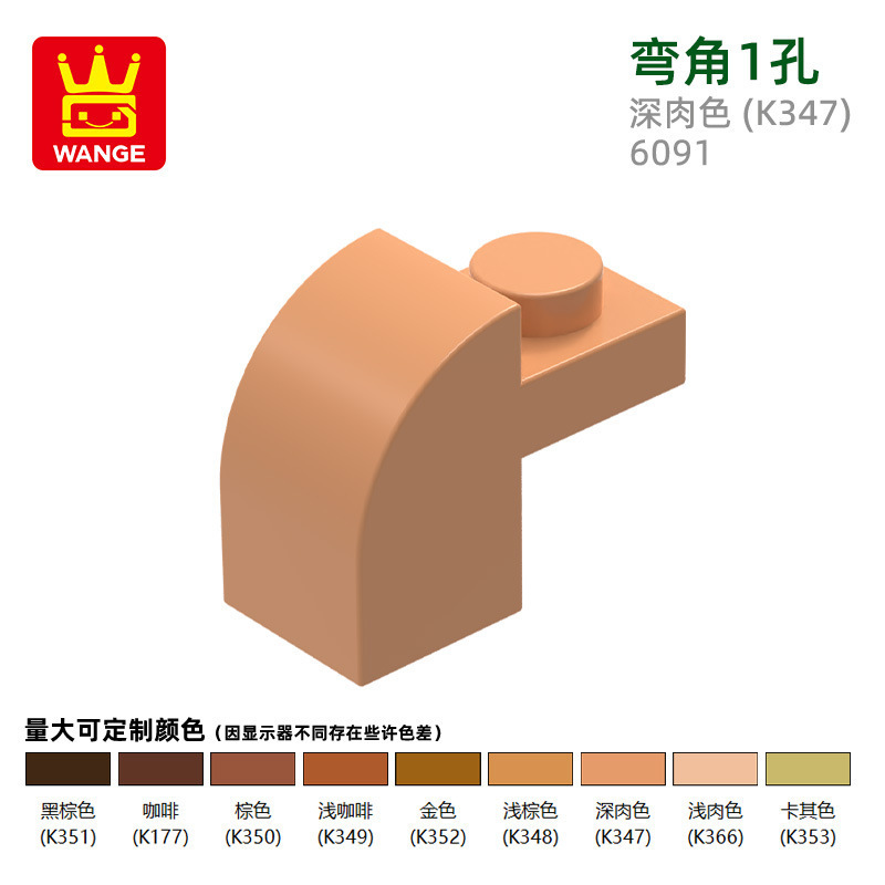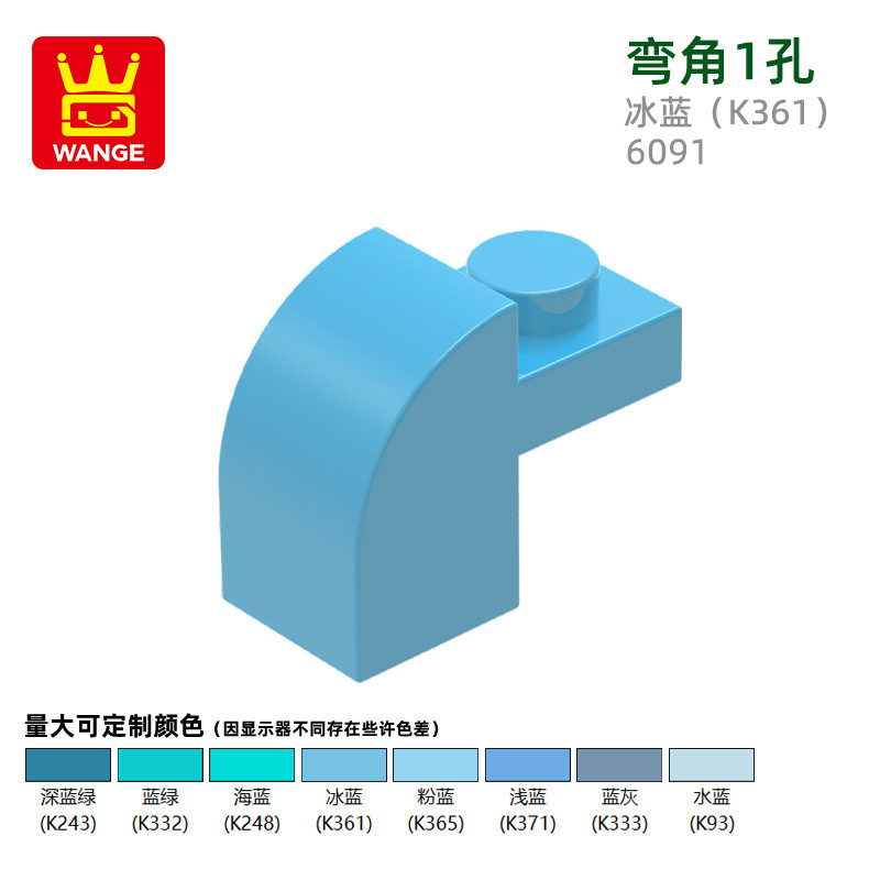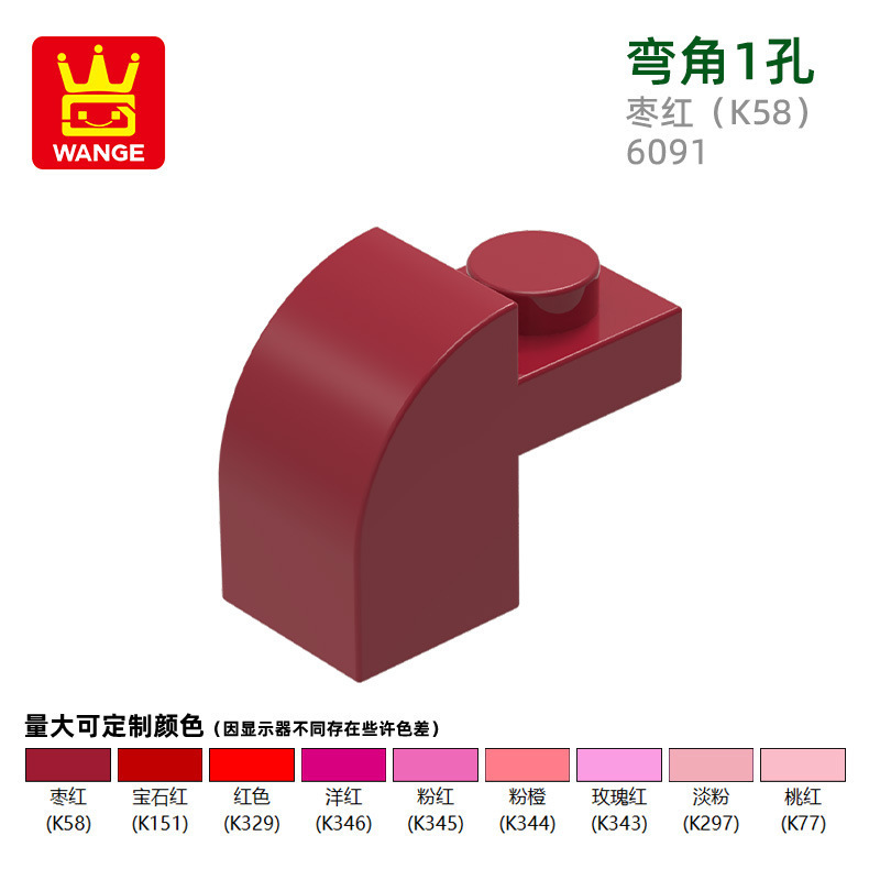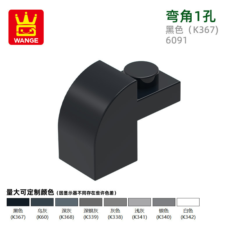 Wange diy 작은 입자 국내 빌딩 블록 6091 조립 부품과 호환 가능 곡선 각도 1 구멍 과학 및 교육 장난감 손으로 만든 도매