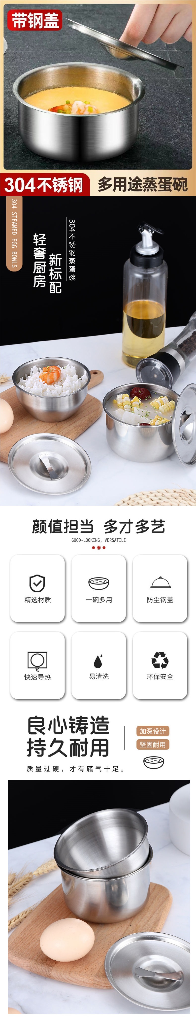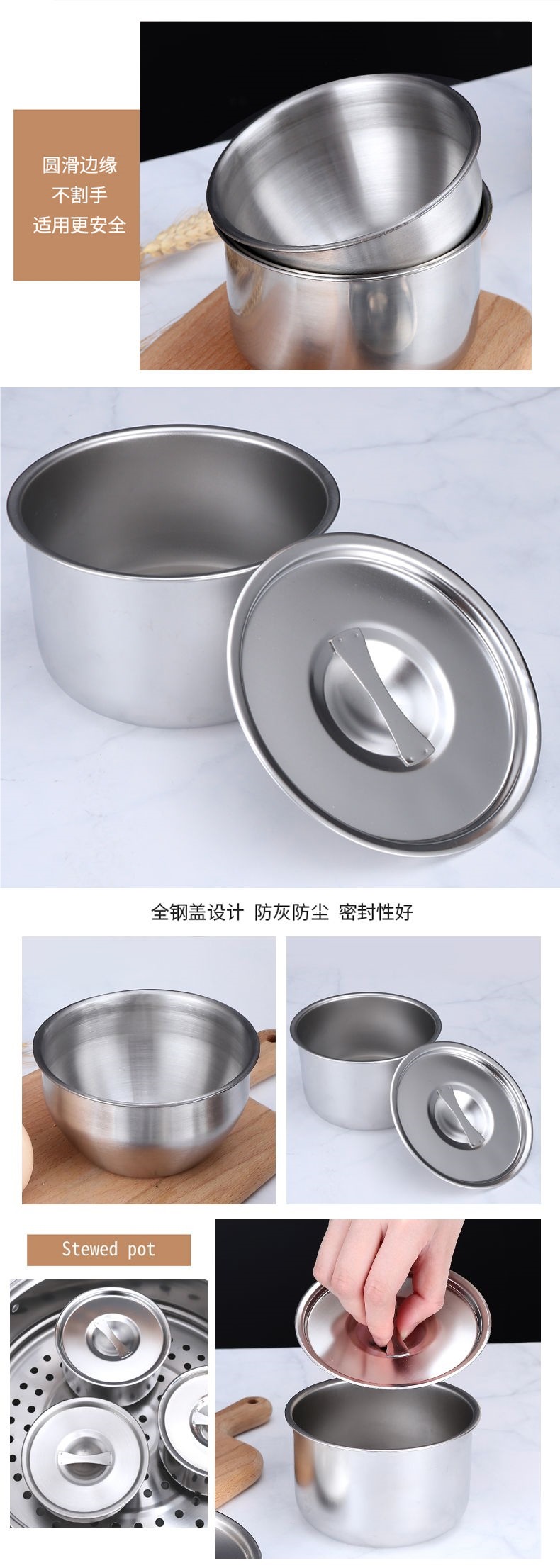 뚜껑이 있는 304 스테인레스 스틸 계란찜 그릇, 뚜껑이 있는 아기 찌개 그릇, 가정용 고온 방지 찜 밥 식품 등급