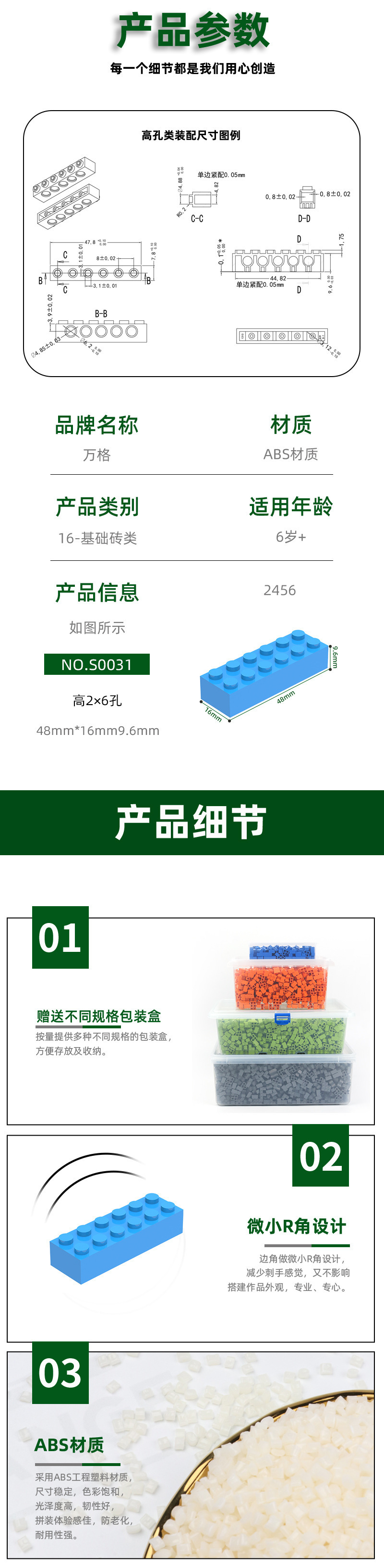 Wange 어린이 장난감 작은 입자 국내 빌딩 블록 2456 44237 조립 부품 높이 2×6 구멍 액세서리와 호환 가능스토어 가기