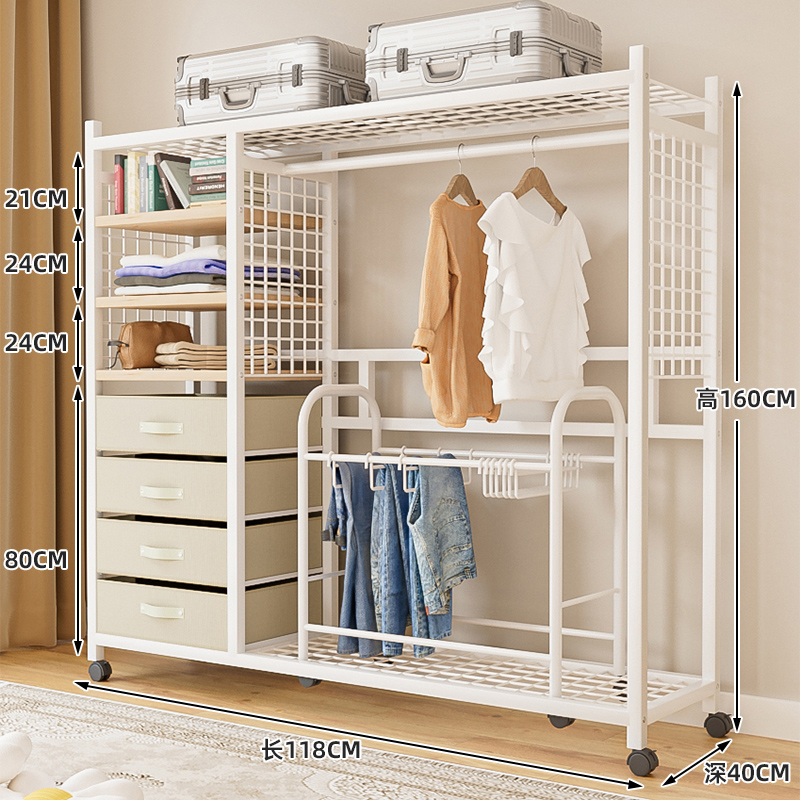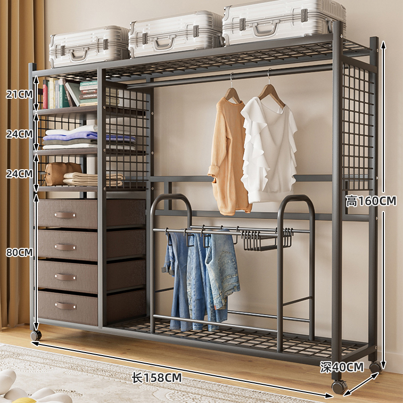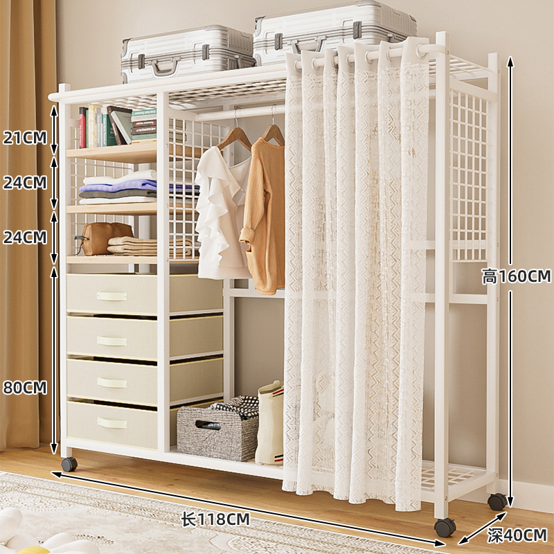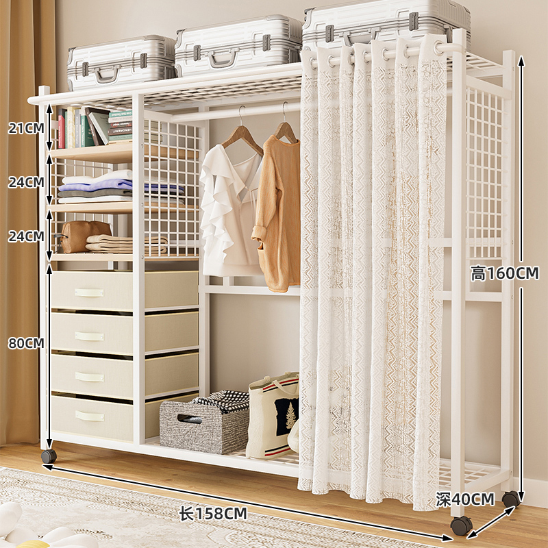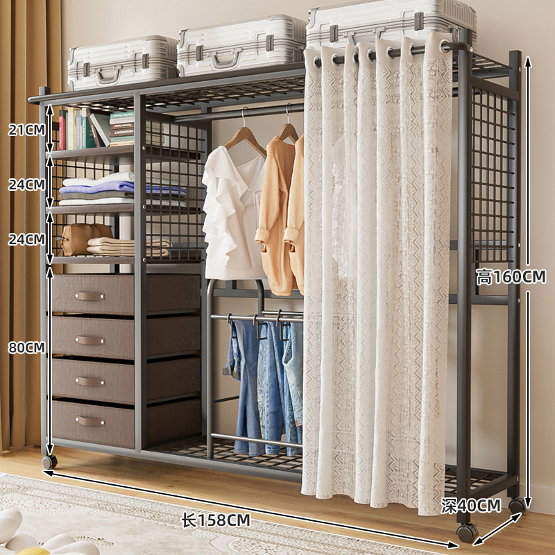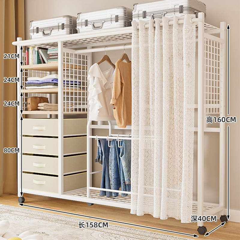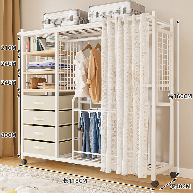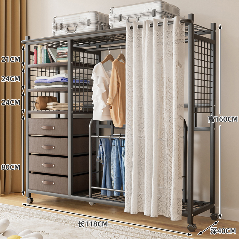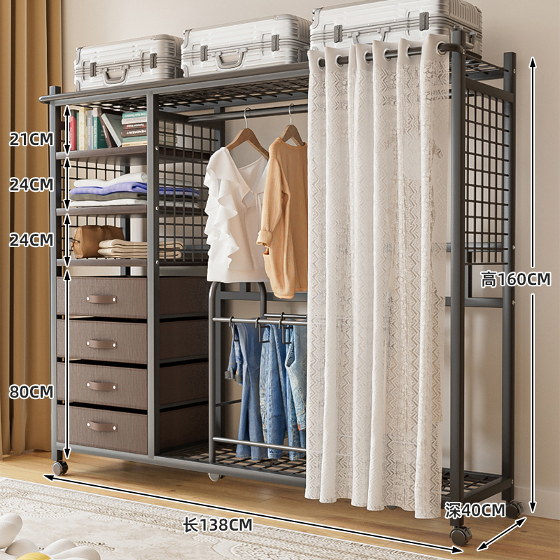 선반 간단한 옷장 조립 강력하고 내구성이 뛰어난 간단한 침실 홈 방진 커튼 개방형 옷장 보관 캐비닛