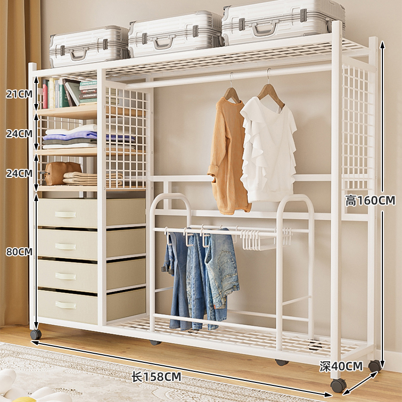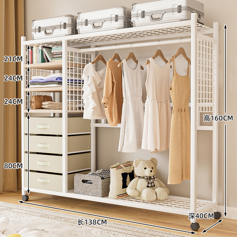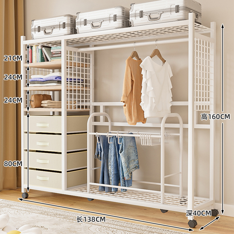 • 138cm 거즈 커튼 스타일의 철제 목재 캐비닛(서랍 + 바지걸이 포함 흰색)