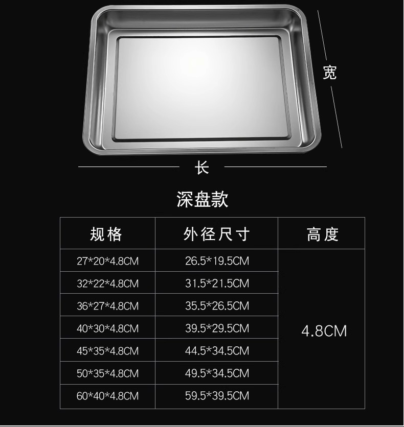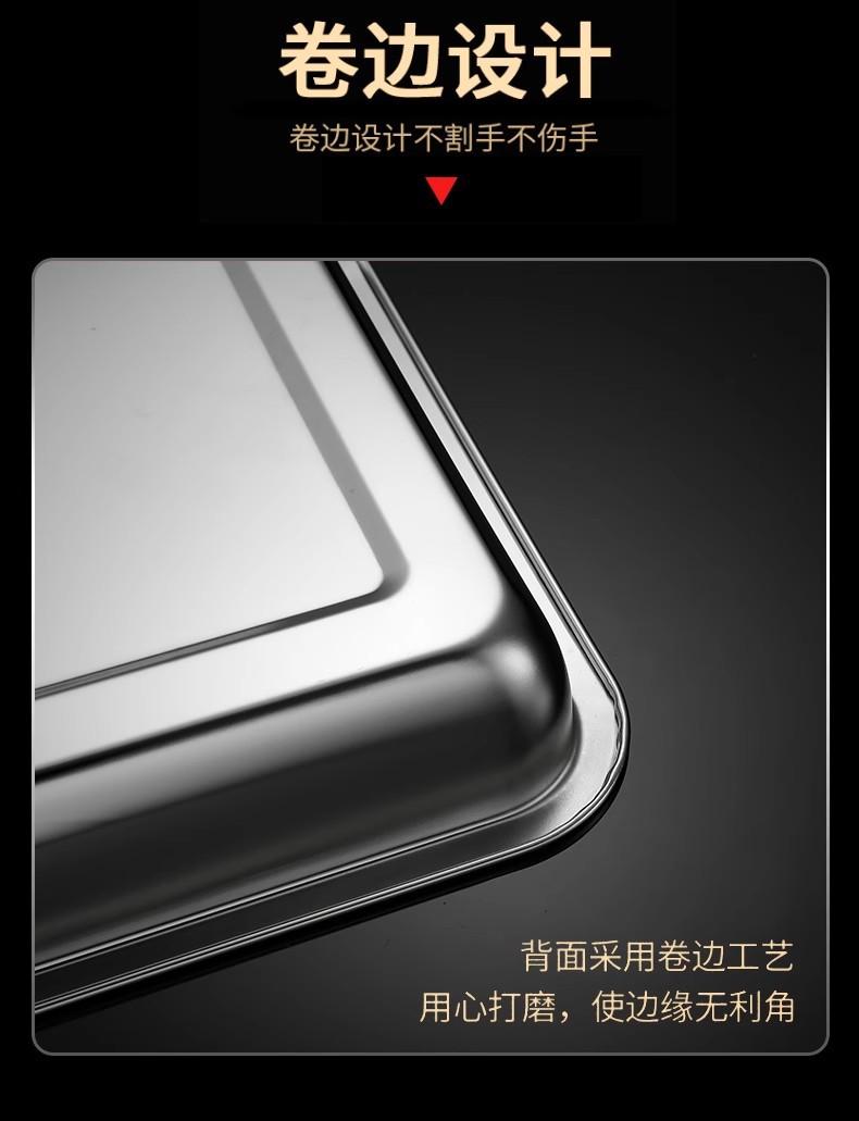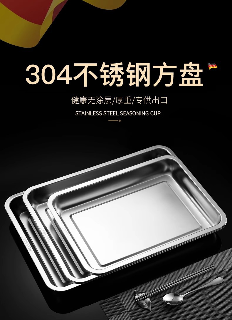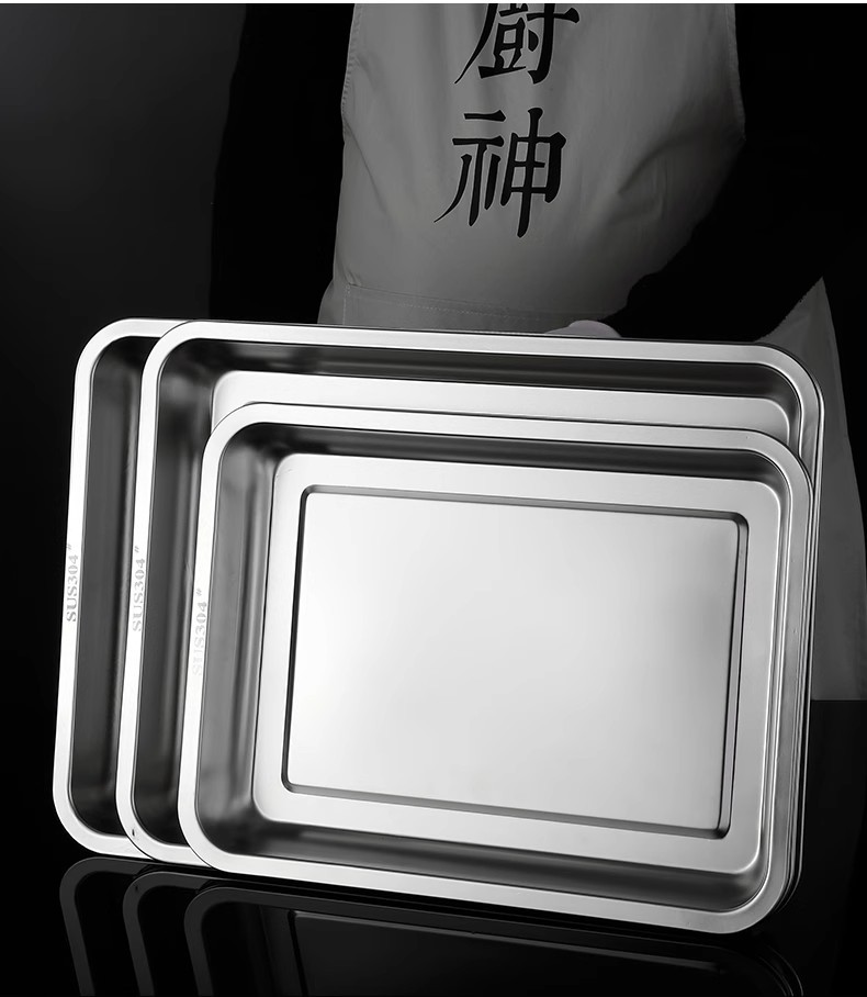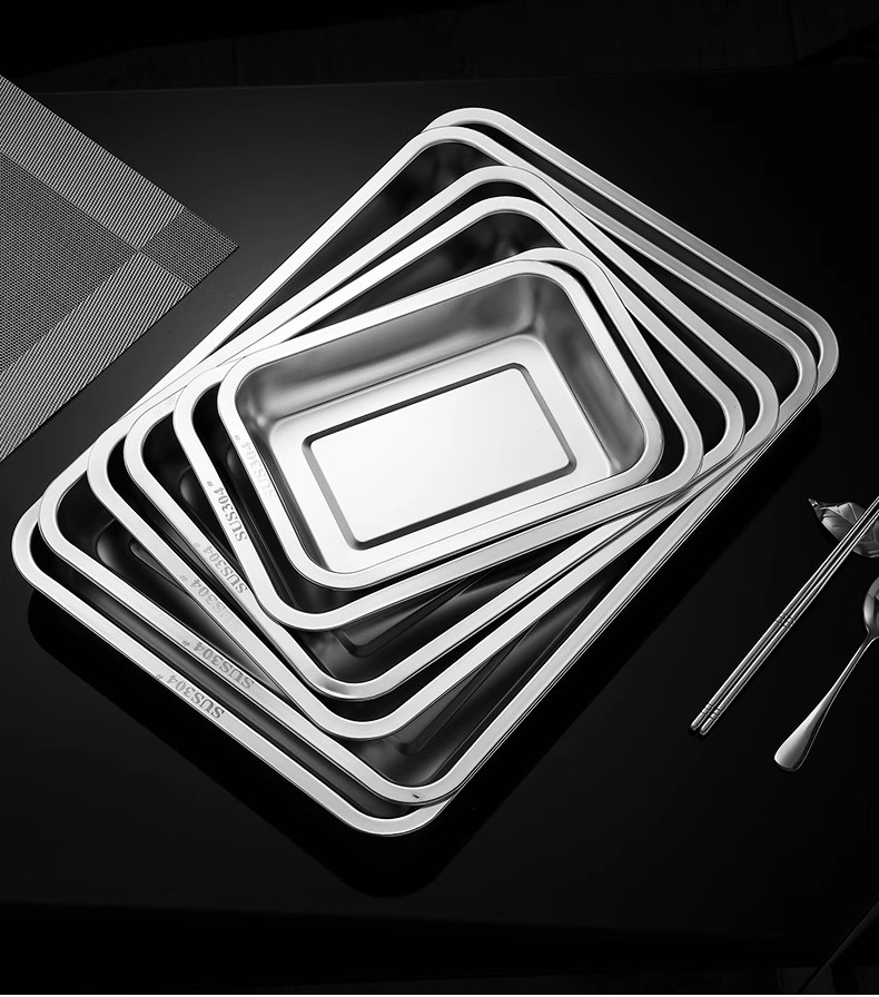 식품 등급 304 스테인레스 스틸 사각 접시 두꺼운 찜 밥 접시 상업용 직사각형 저녁 식사 접시 캔틴 접시 깊은 트레이