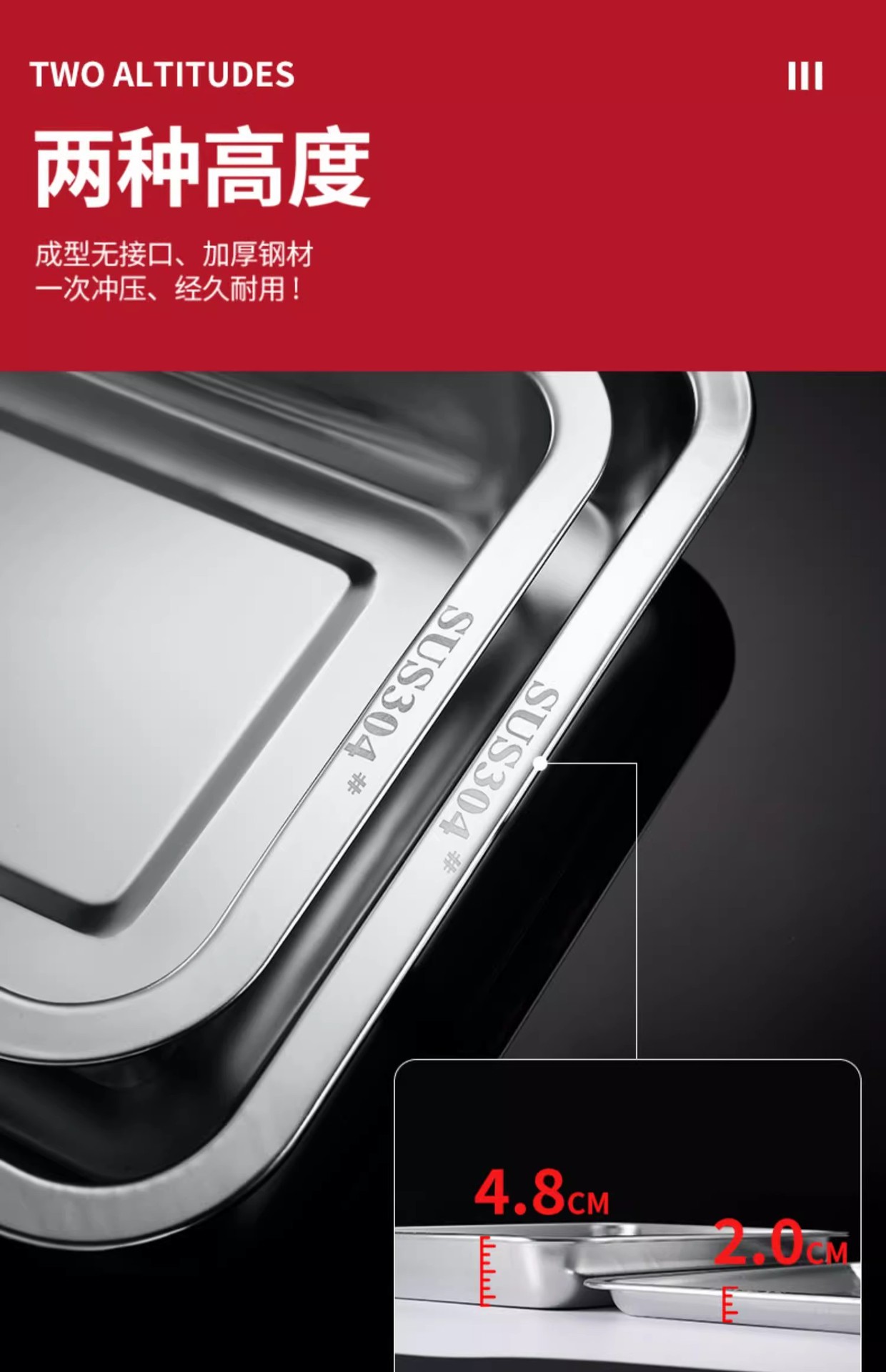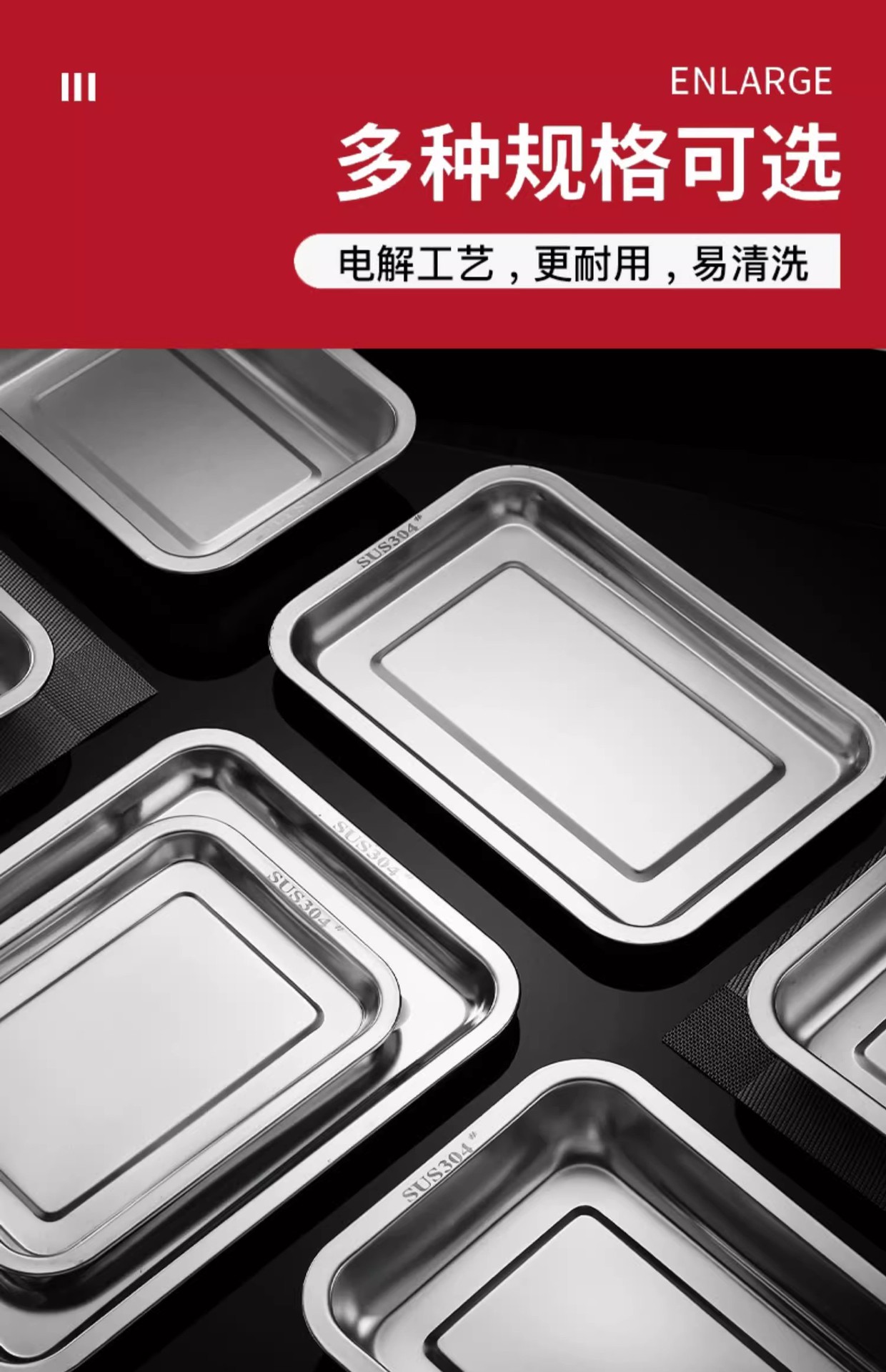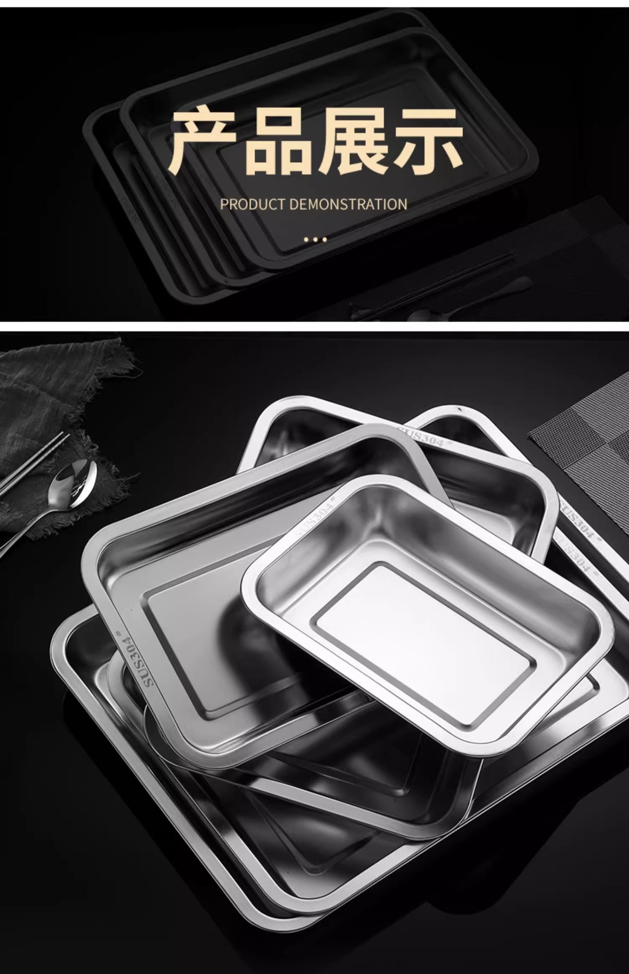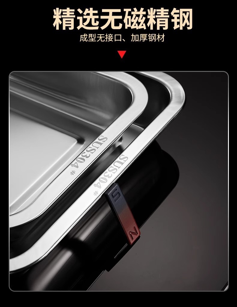 식품 등급 304 스테인레스 스틸 사각 접시 두꺼운 찜 밥 접시 상업용 직사각형 저녁 식사 접시 캔틴 접시 깊은 트레이