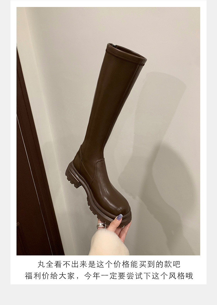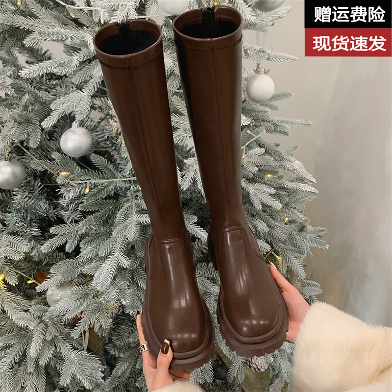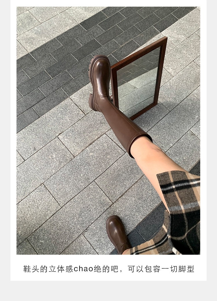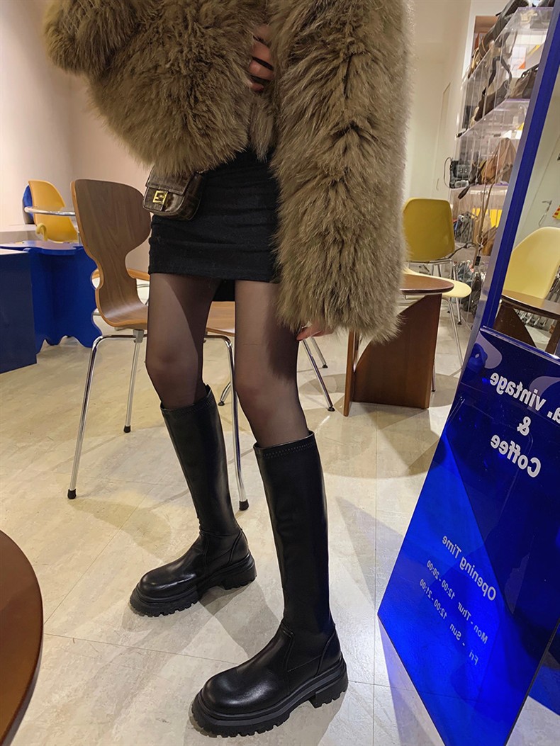 소가죽 버전 ~ 두꺼운 밑창 부츠 2023 봄 가을 신상품 정품 가죽 슬리밍 핫 걸 부츠 여성 하이 라이더 부츠스토어 가기