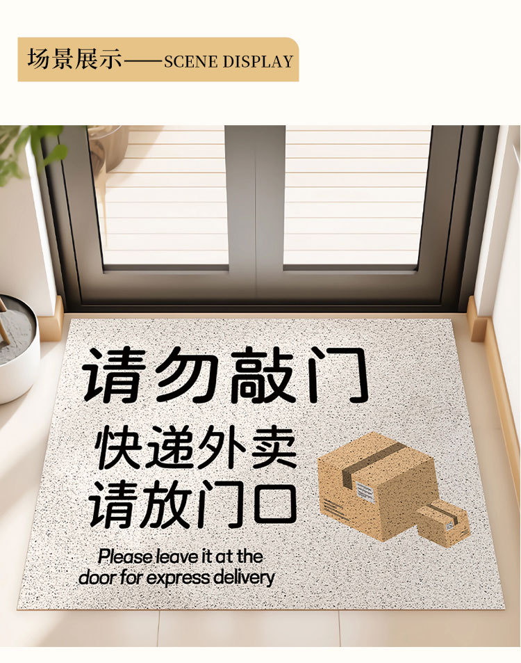 택배 테이크아웃을 위해 문앞에 놓으십시오. 문앞 매트, 문표, 카펫을 두십시오. 문을 두드리지 마십시오.