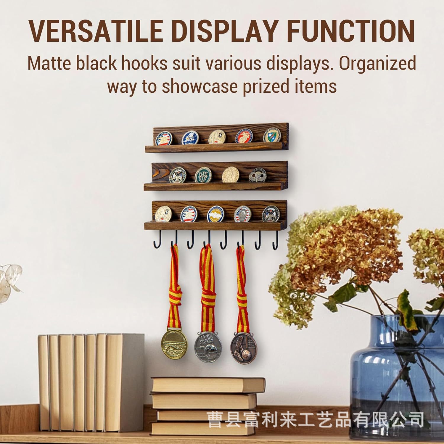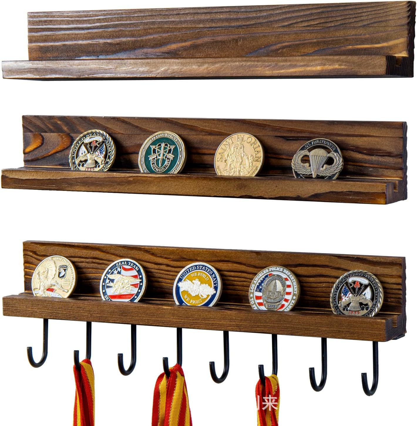 나무로 만든 메달 전시대, 원목 가정용 벽걸이 수납 선반, 후크가 있는 메달 보관대, 레트로 벽걸이 선반