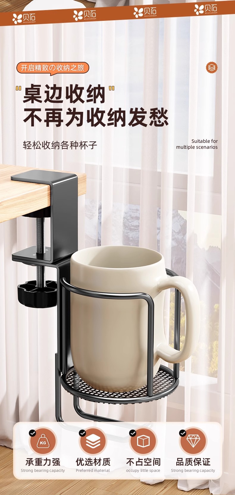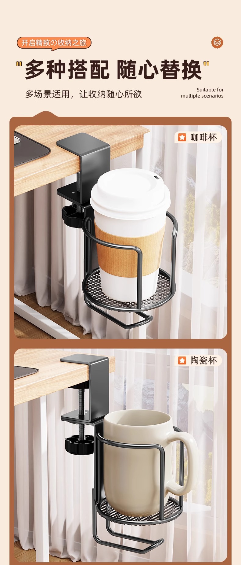 사무실 책상 물컵 홀더 테이블 옆 수납 물컵 클립 스탠드 이어폰 가방 걸이 수납