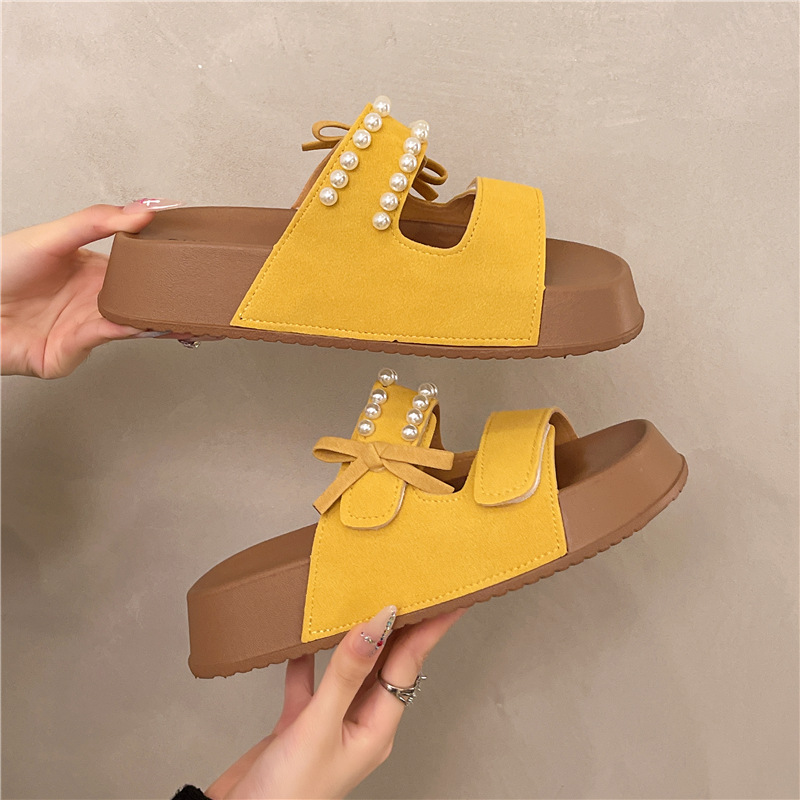 새로운 스타일의 벨크로 슬리퍼, 외부 착용용 진주 체인, 여름 한국식 귀여운 Birkenstock 슬리퍼, 작은 여성용 슬리퍼스토어 가기