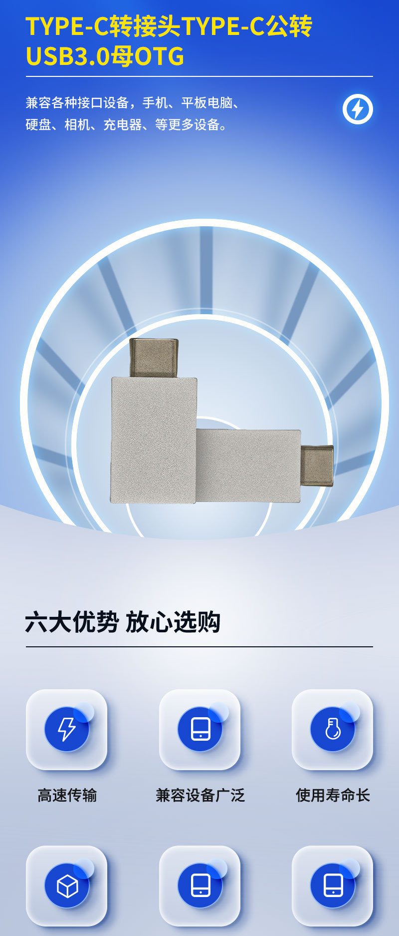 TYPE-C 어댑터 - C형(수) - USB3.0(암) OTG 호환, 다양한 C형(수) 인터페이스 호스트, 멀티 키보드, 멀티 인터페이스 지원스토어 가기