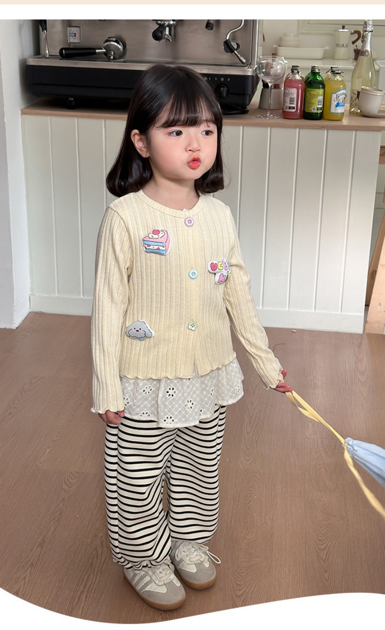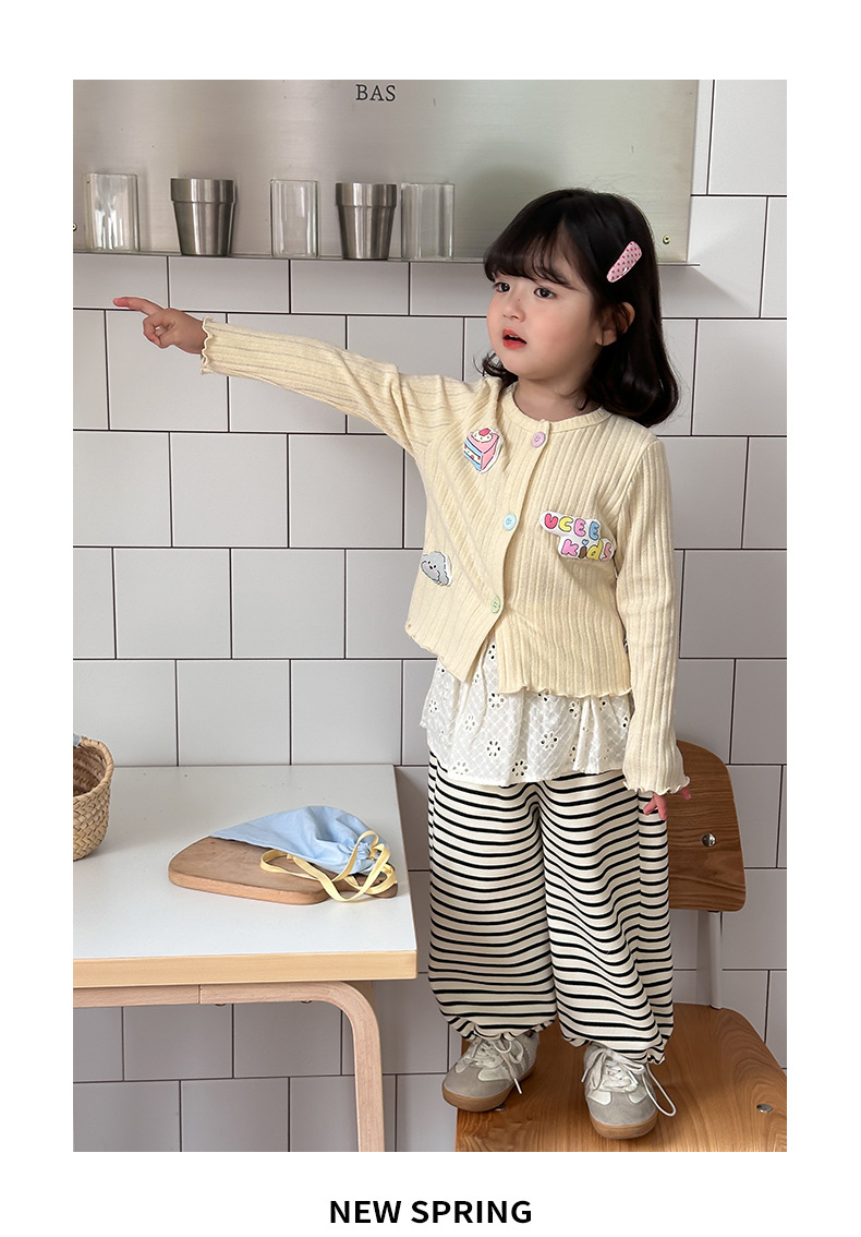 [재고 있음] 한국 아동복 2025 가을 신작 베이비 한국식 가디건 여아 긴팔 스웨터 바닥 셔츠