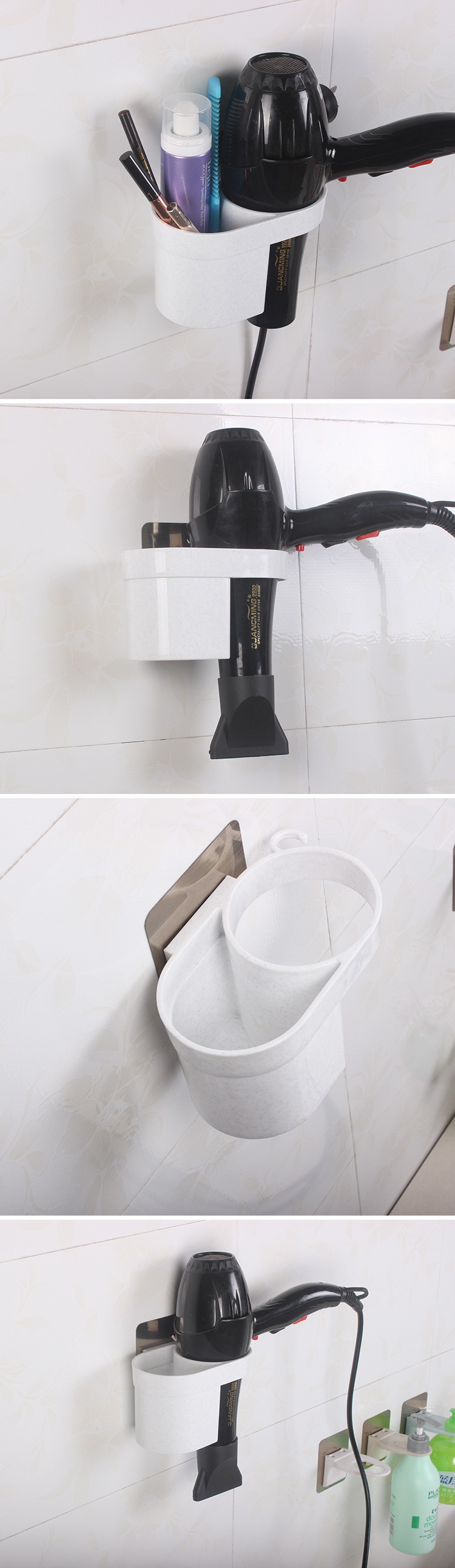 맞춤형 벽걸이형 헤어드라이어 욕실 수납 선반 무타공 수납 정리대 도매