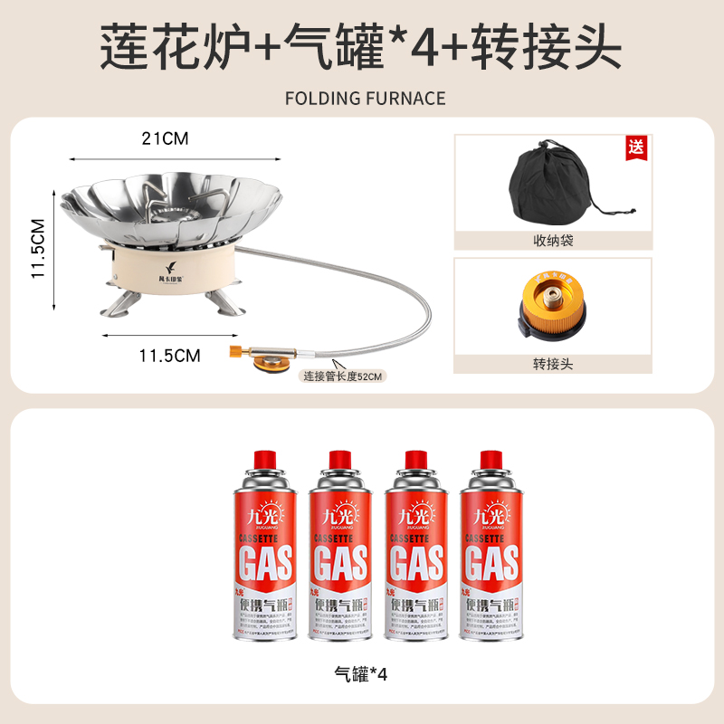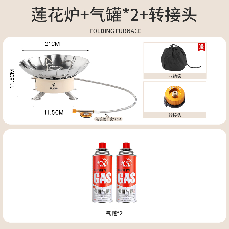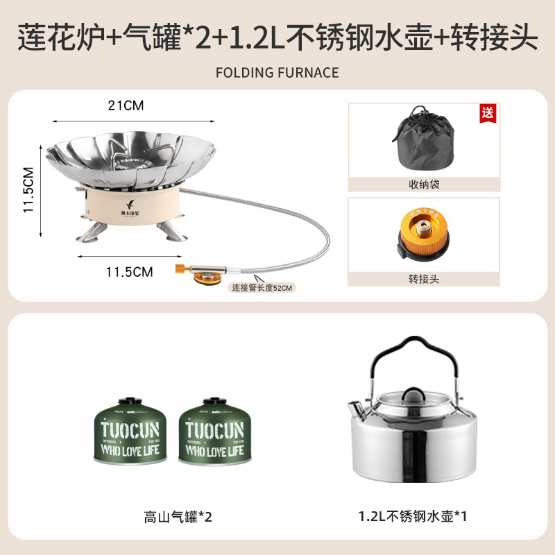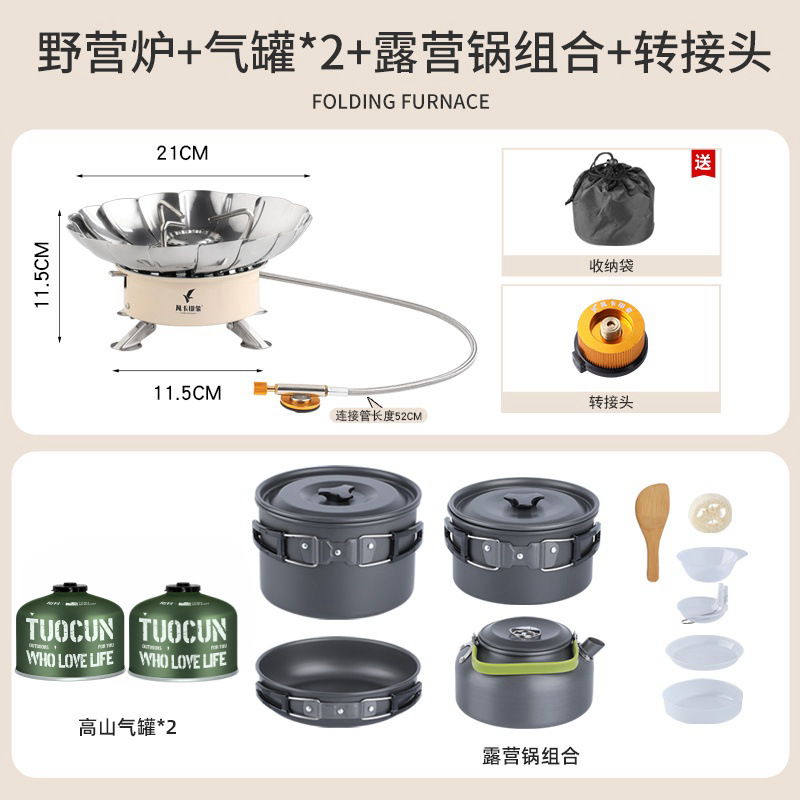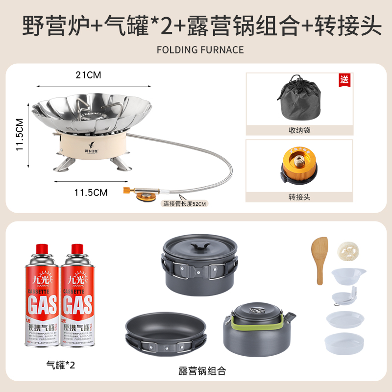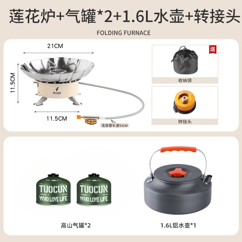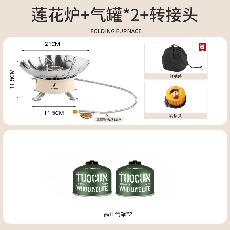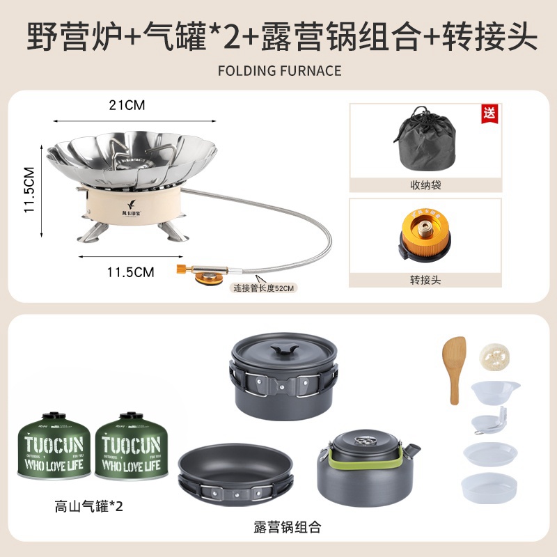 • 로터스 스토브 + 가스 탱크 * 2 + 5인용 캠핑 냄비 세트 + 어댑터