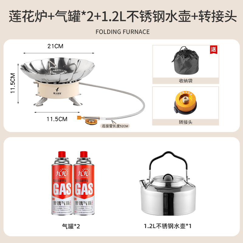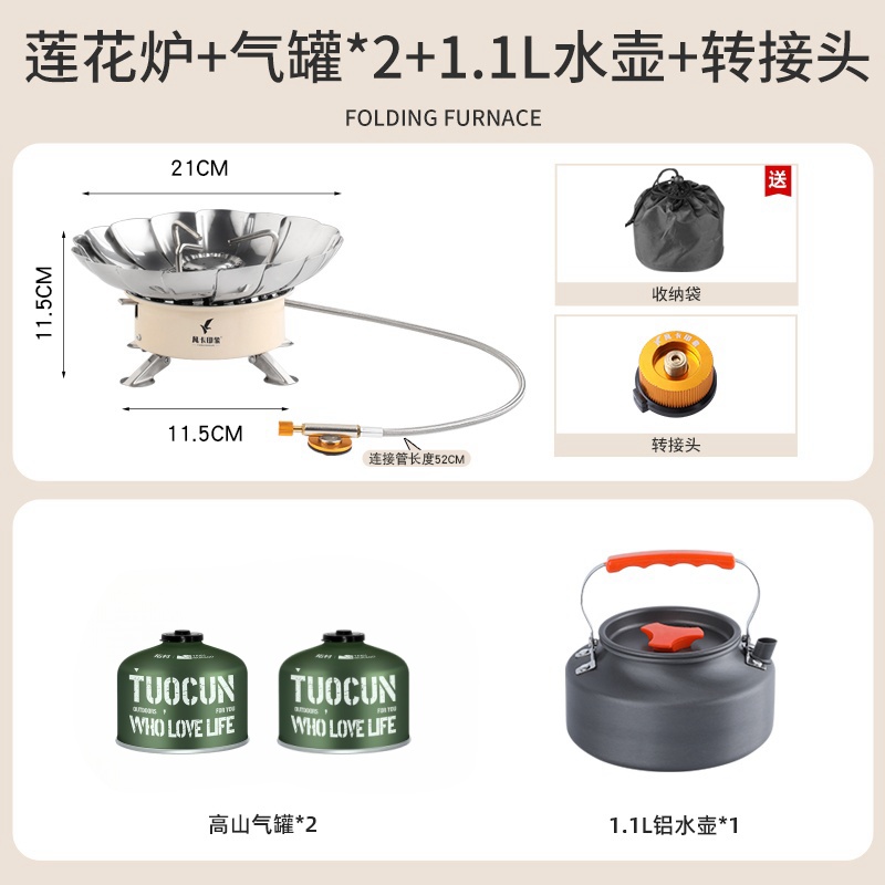 • [메인 사진과 같은 스타일] 연꽃 난로 + 알파인 가스 탱크 * 2 + 녹색 스테인레스 스틸 주전자 + 어댑터