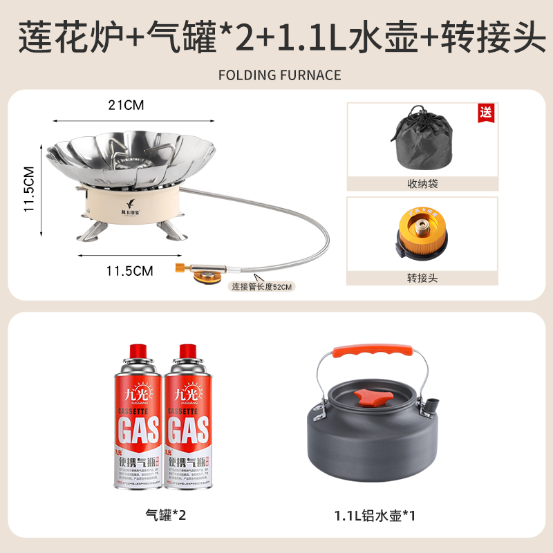 • 로터스 스토브+가스 탱크*2+1.1L 알루미늄 주전자+어댑터
